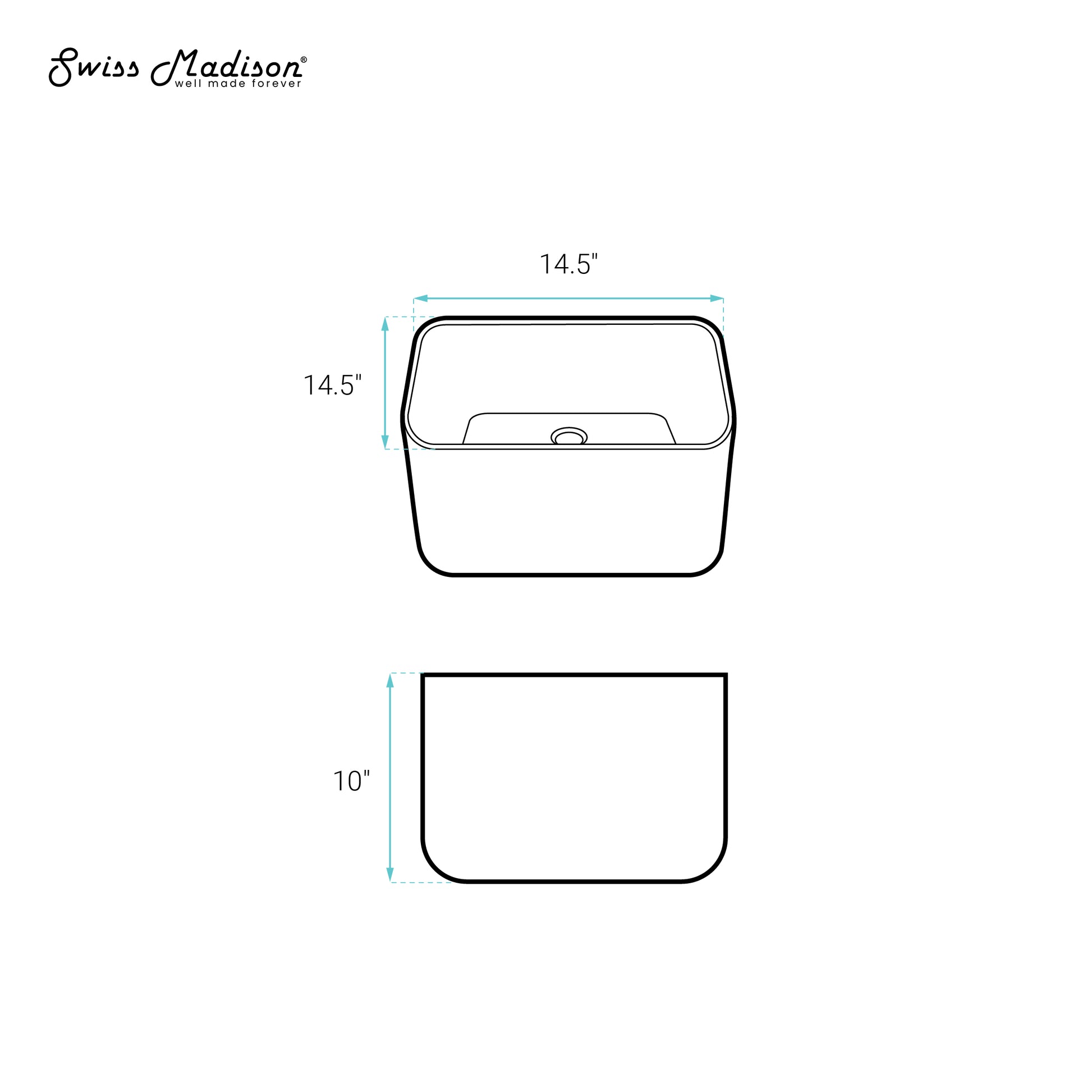 What are the dimensions of the Swiss Madison Carre 14.5" Square Vessel Bathroom Sink?