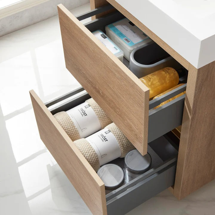 Vinnova, Huesca 24" Single Sink Bath Vanity in North American Oak with White Composite Integral Square Sink Top