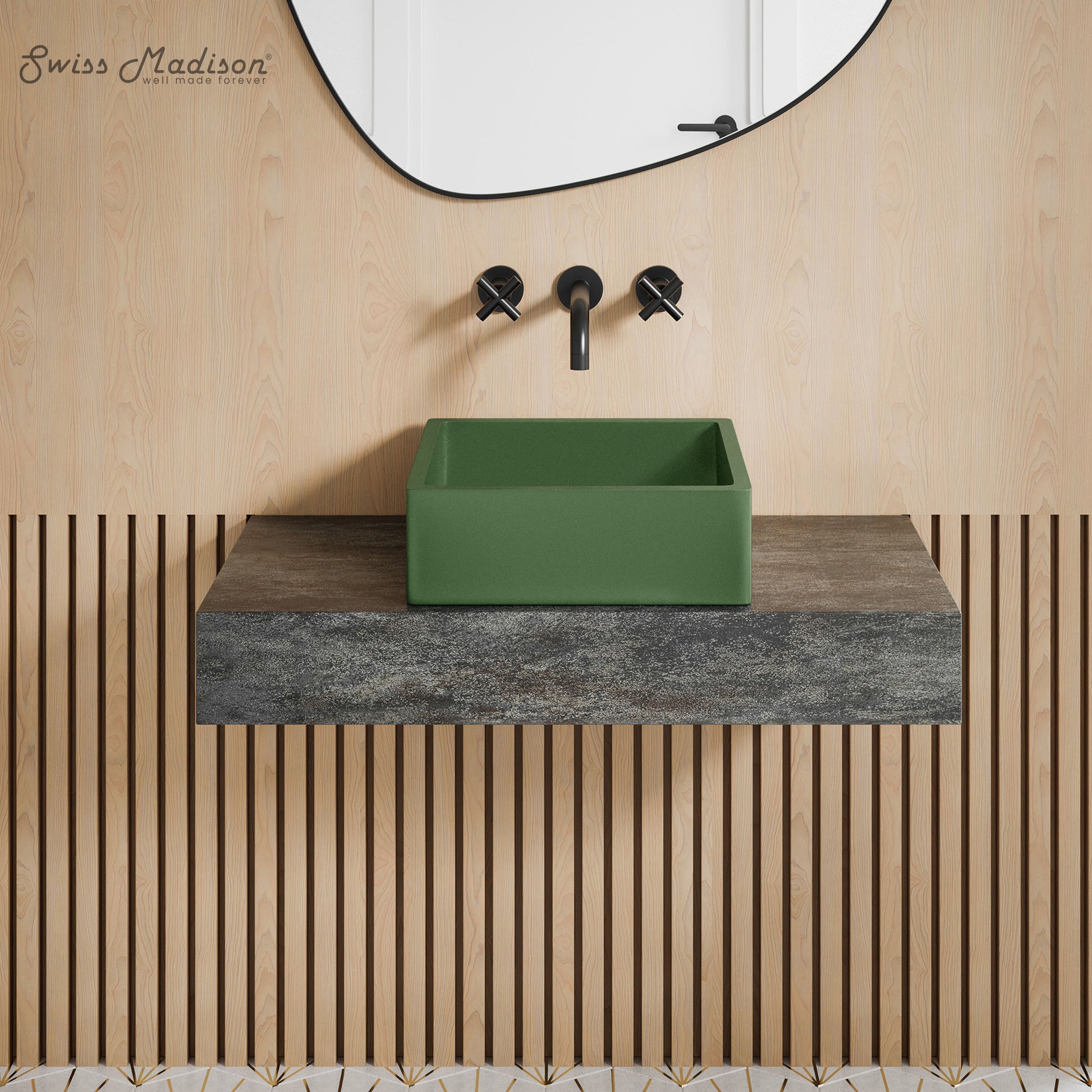 Swiss Madison, Lisse 15.5" Concrete Square Vessel Sink in Matte Royal Green