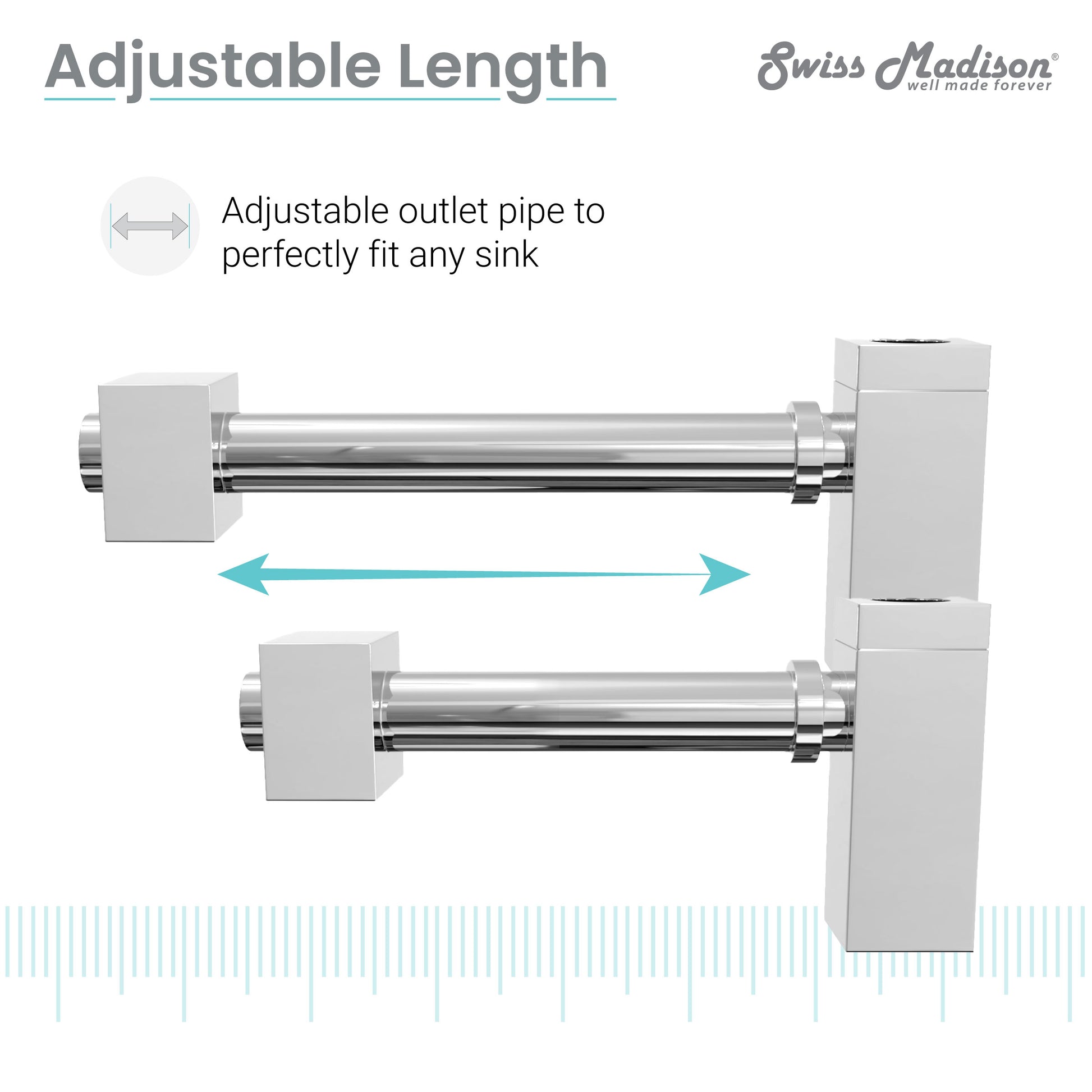 Elevate your contemporary bathroom design with the Swiss Madison Square Bottle Trap Drain in Chrome. This essential accessory is engineered for discerning homeowners and designers seeking a sleek, reliable, and space-saving solution for their sink, effortlessly enhancing both aesthetics and performance.