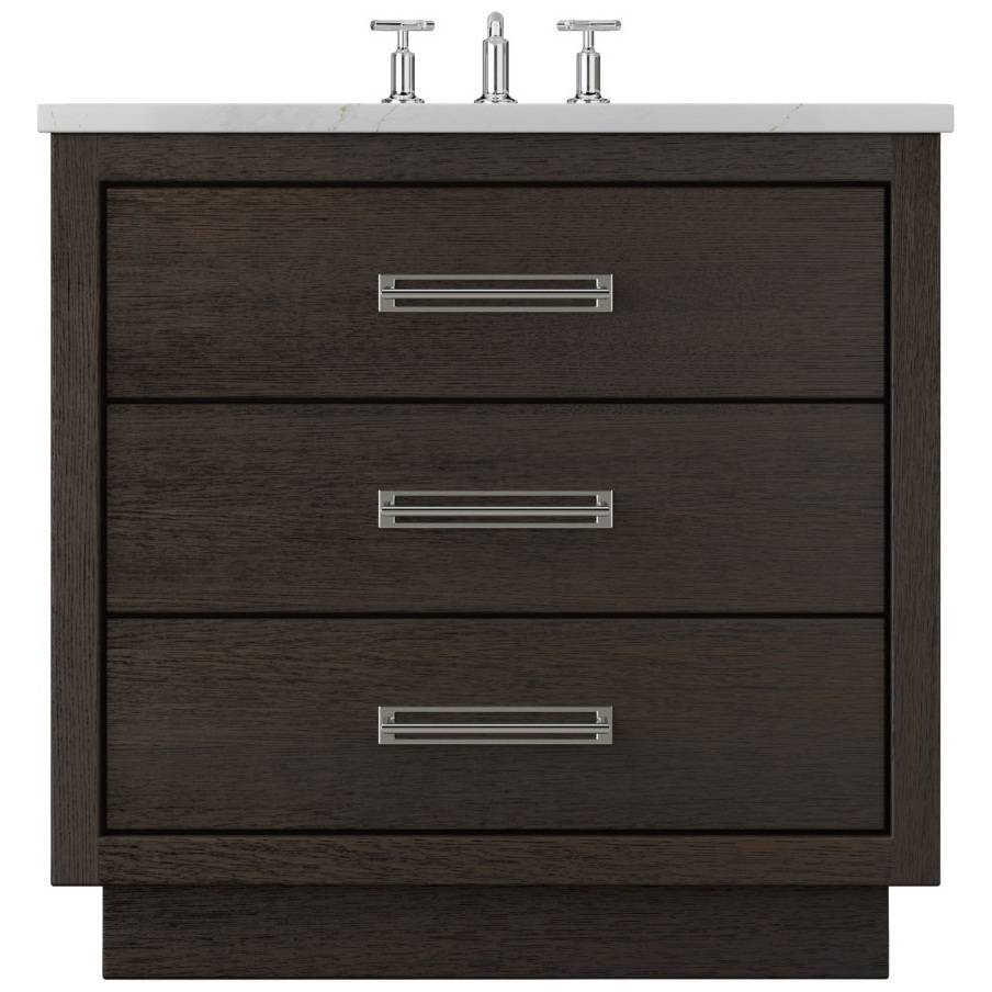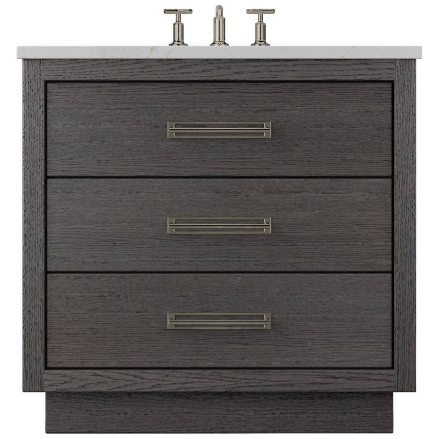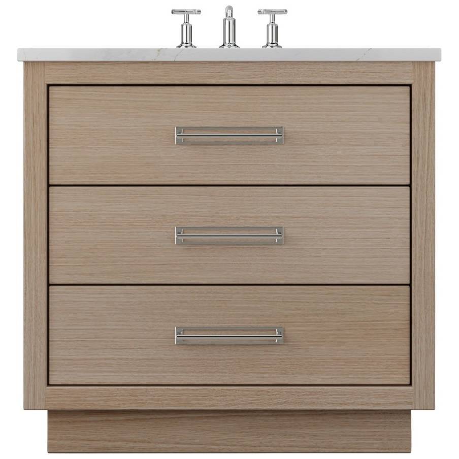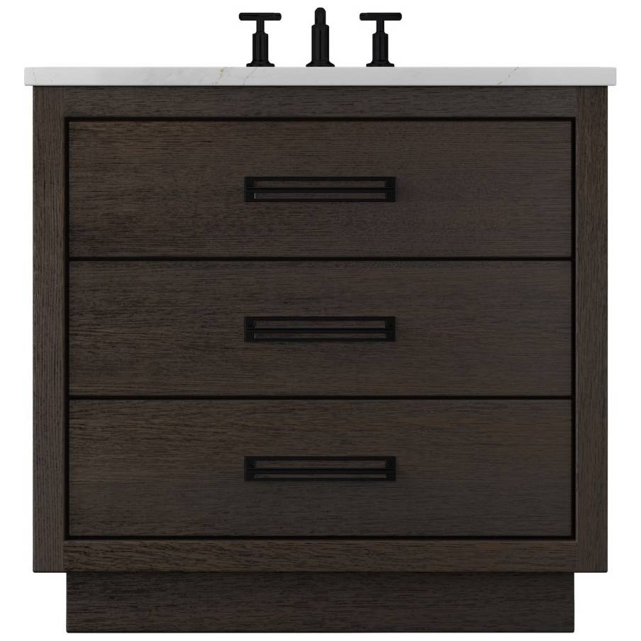 The Avalon vanity merges contemporary design with handcrafted artistry, creating a harmonious balance in any space. This freestanding vanity features a 2" frame, exquisite decorative hardware with a backplate, a false front and two u-shaped soft-close drawers. Available in five custom finishes and 4 sizes.