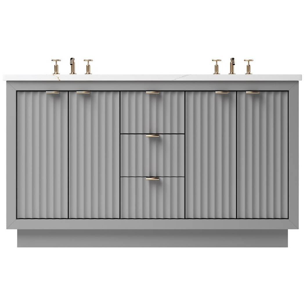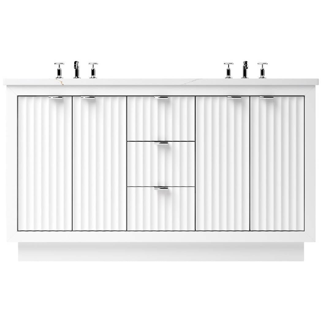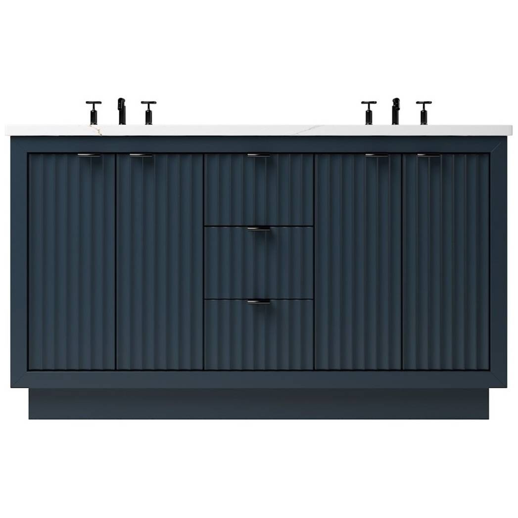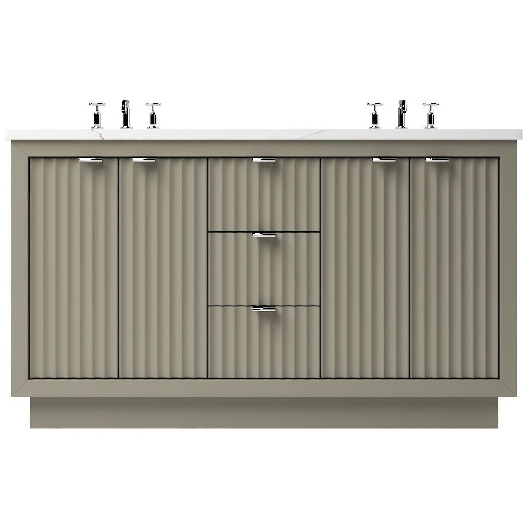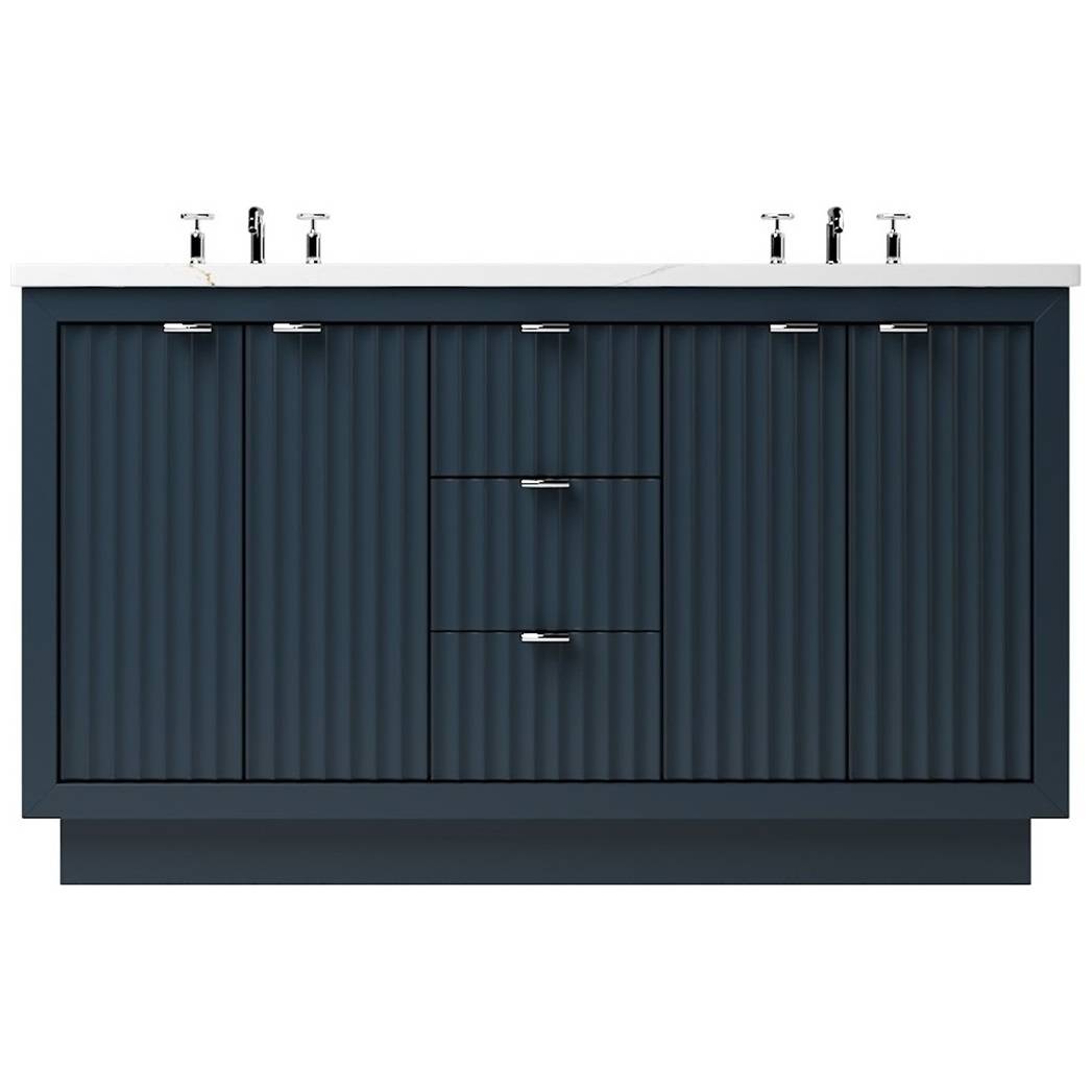 The LeCrieú vanity displays a contemporary aesthetic with sleek scalloped details that refreshes any space. It creates a unique style with great functionality that's built to last. Our freestanding vanity features a bold two inch frame built proud of the soft-close doors and drawers, and is finished in satin varnish. Available in both single and double configurations, each offered in various sizes for any space. Available in 5 unique painted finishes and 2 sizes.