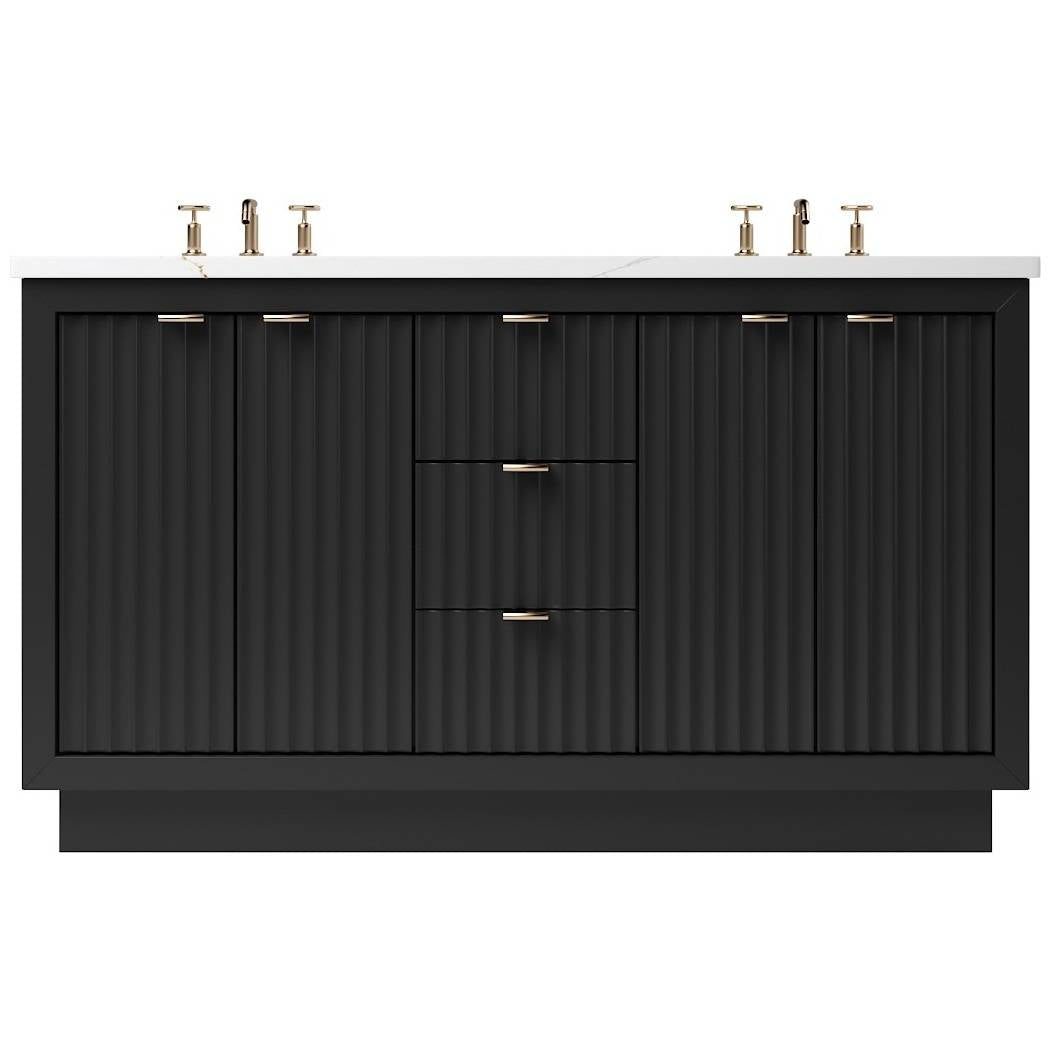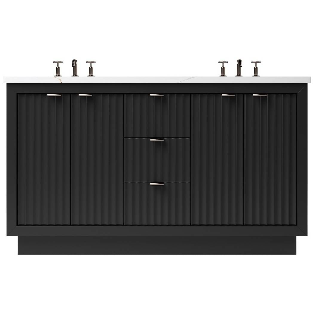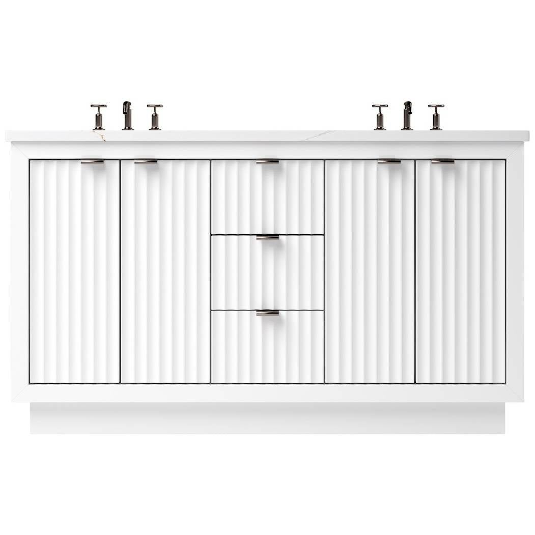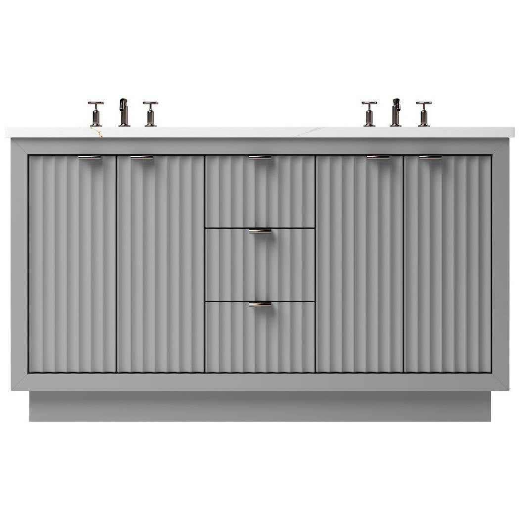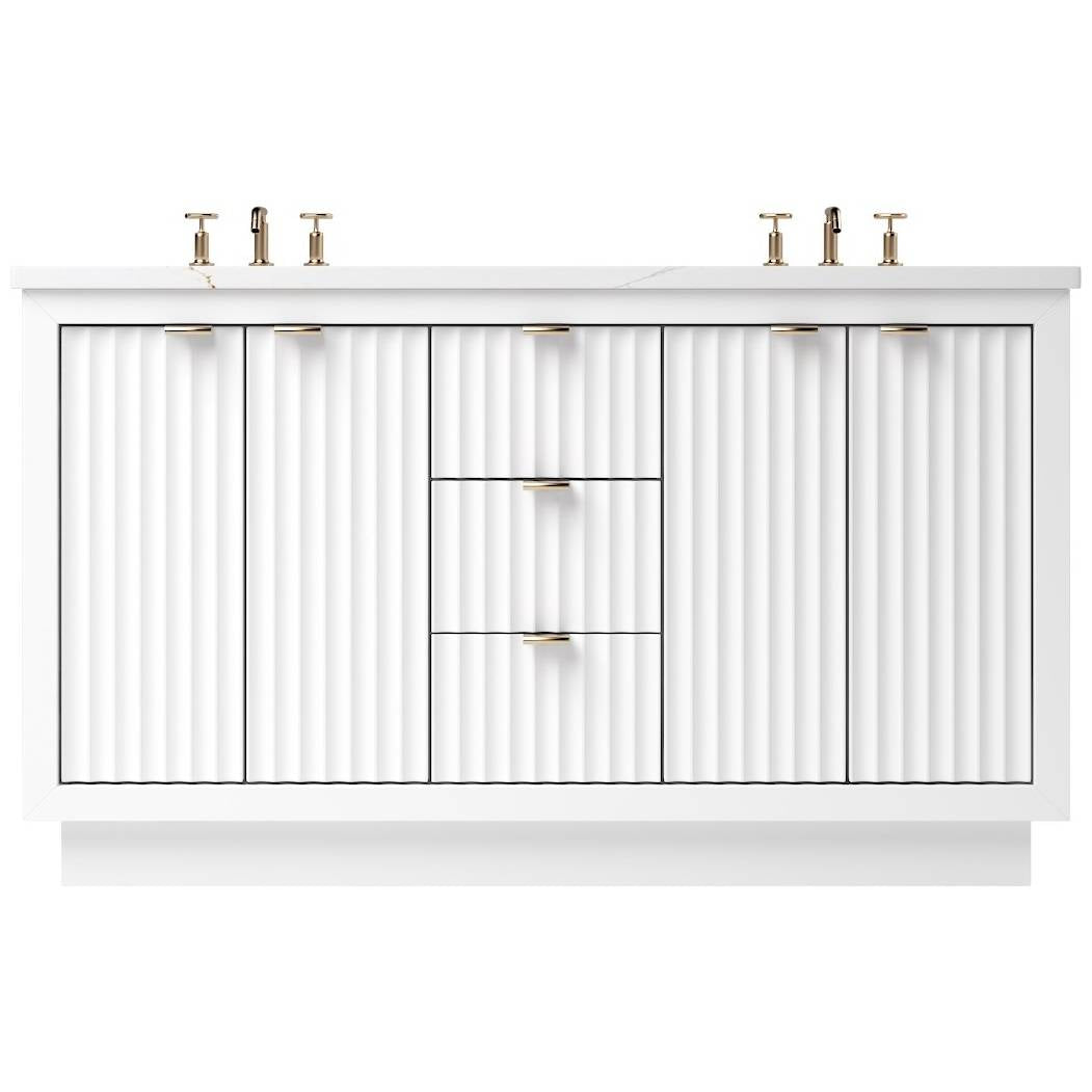 The LeCrieú vanity displays a contemporary aesthetic with sleek scalloped details that refreshes any space. It creates a unique style with great functionality that's built to last. Our freestanding vanity features a bold two inch frame built proud of the soft-close doors and drawers, and is finished in satin varnish. Available in both single and double configurations, each offered in various sizes for any space. Available in 5 unique painted finishes and 2 sizes.