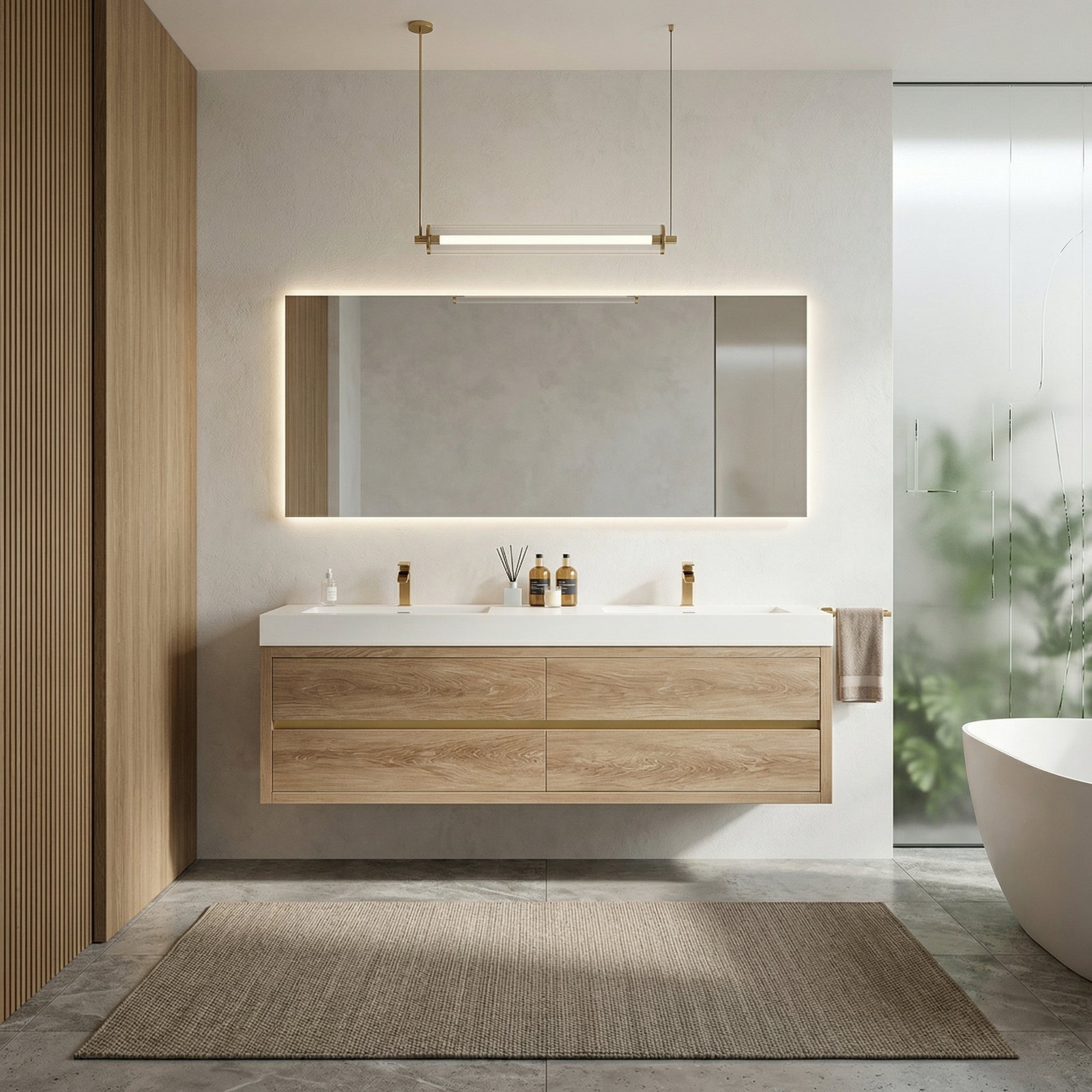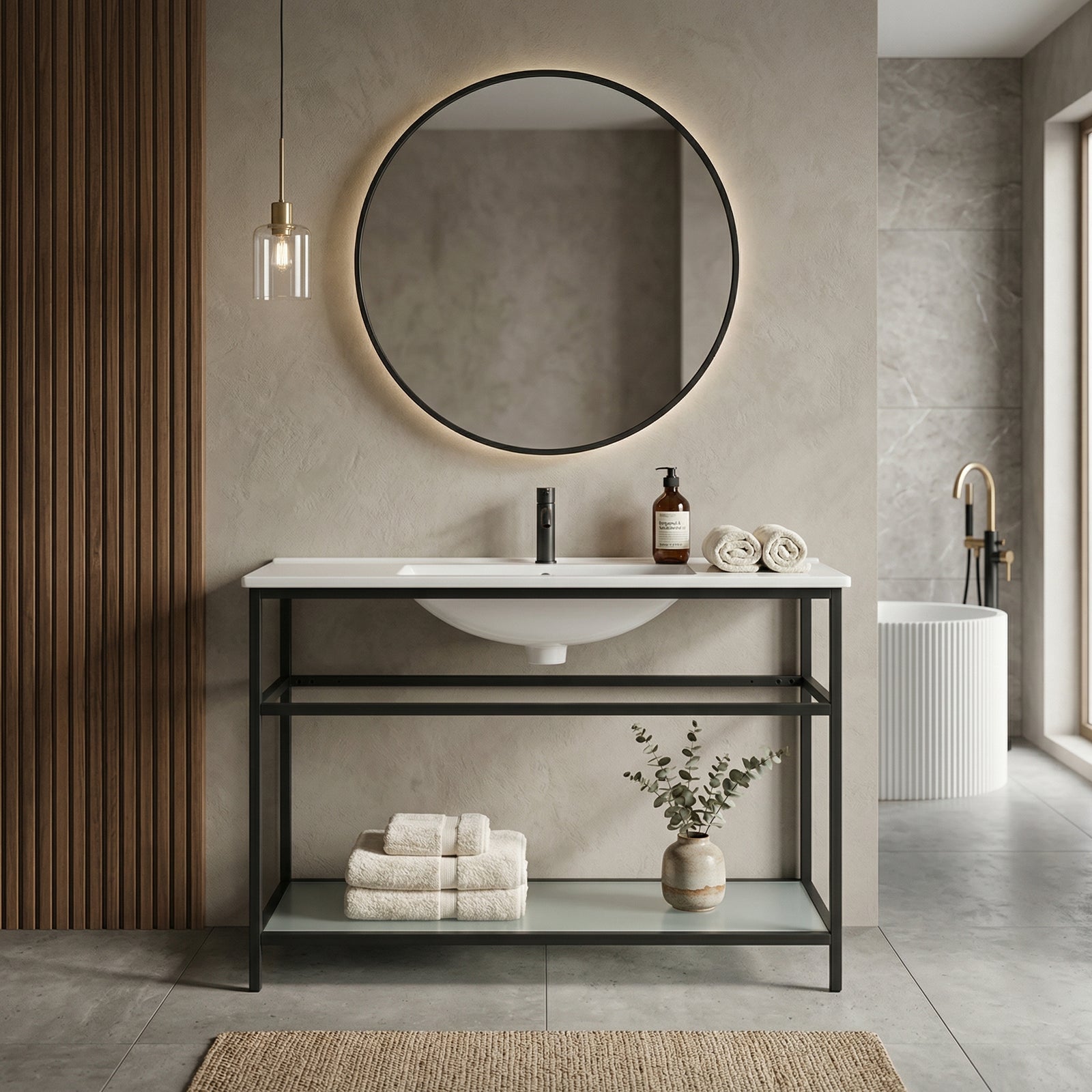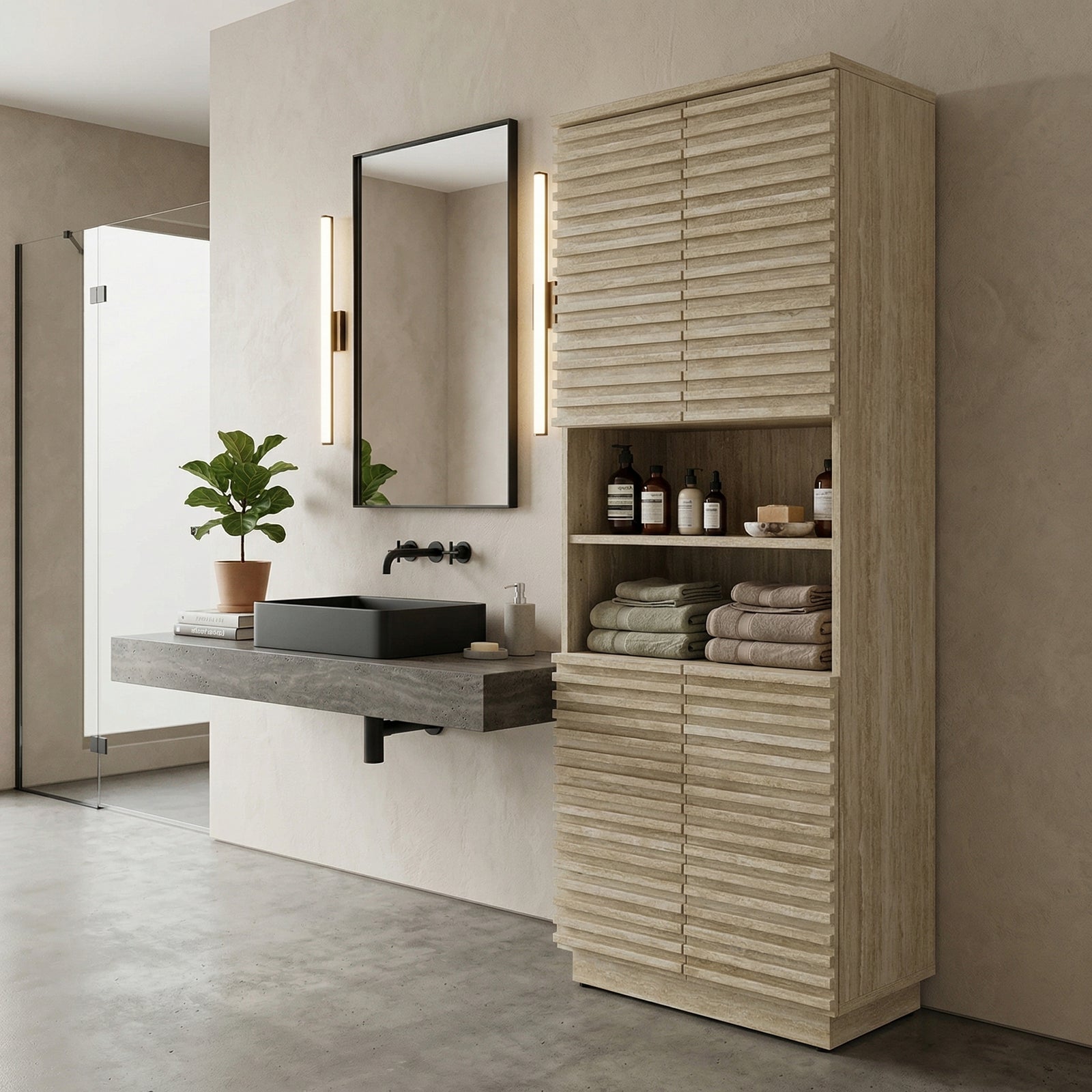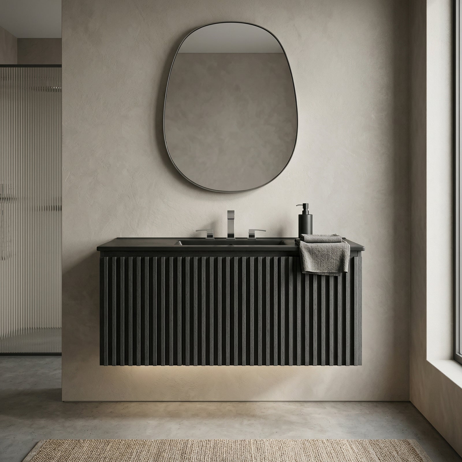 Creates a modern minimalist bathroom design.