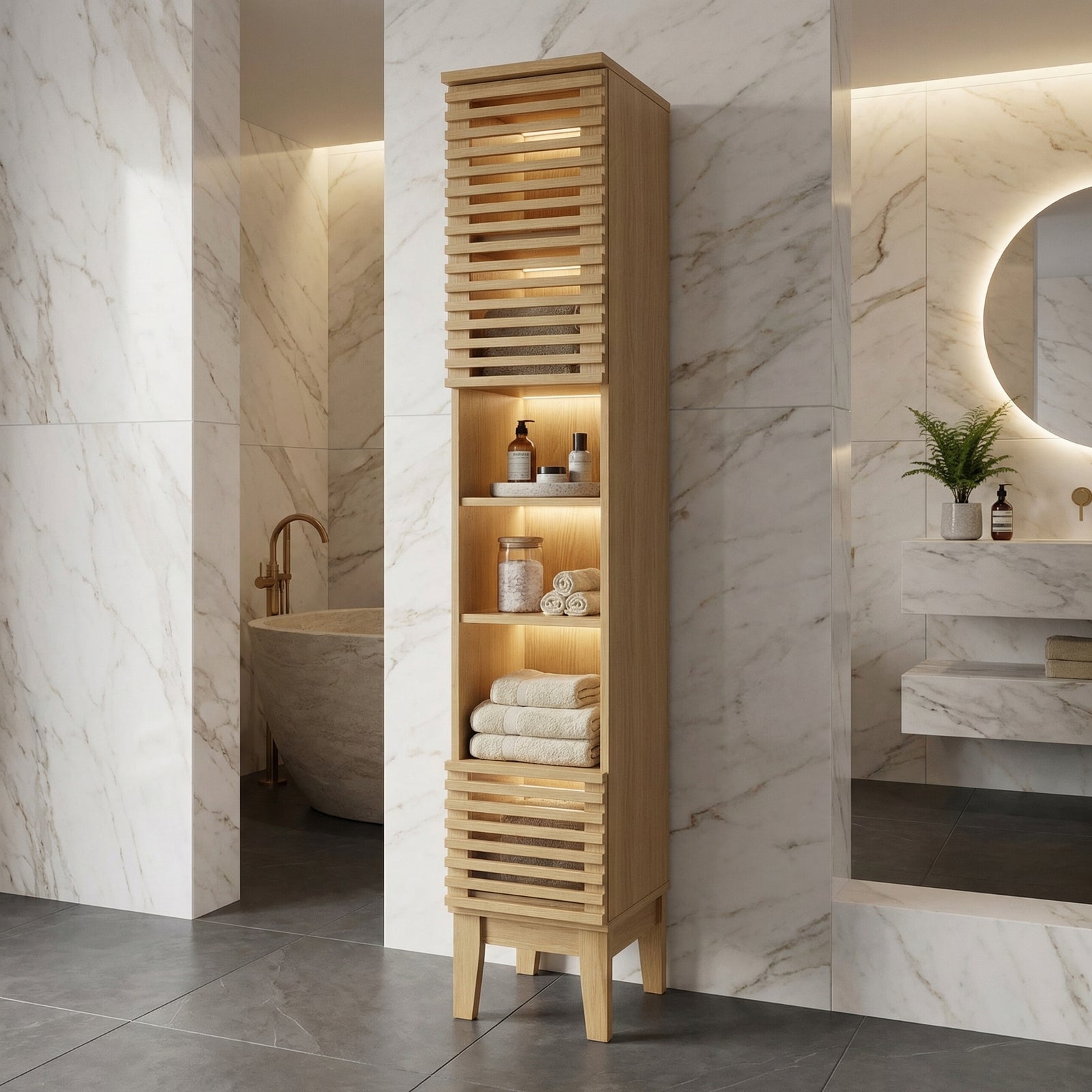 Storage is often limited in compact bathrooms, so choosing the right cabinet design is important.