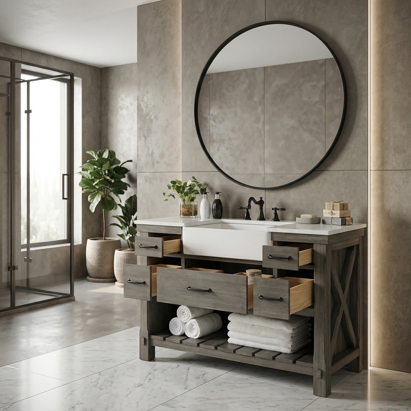 Choose a vanity design that complements the overall bathroom aesthetic.