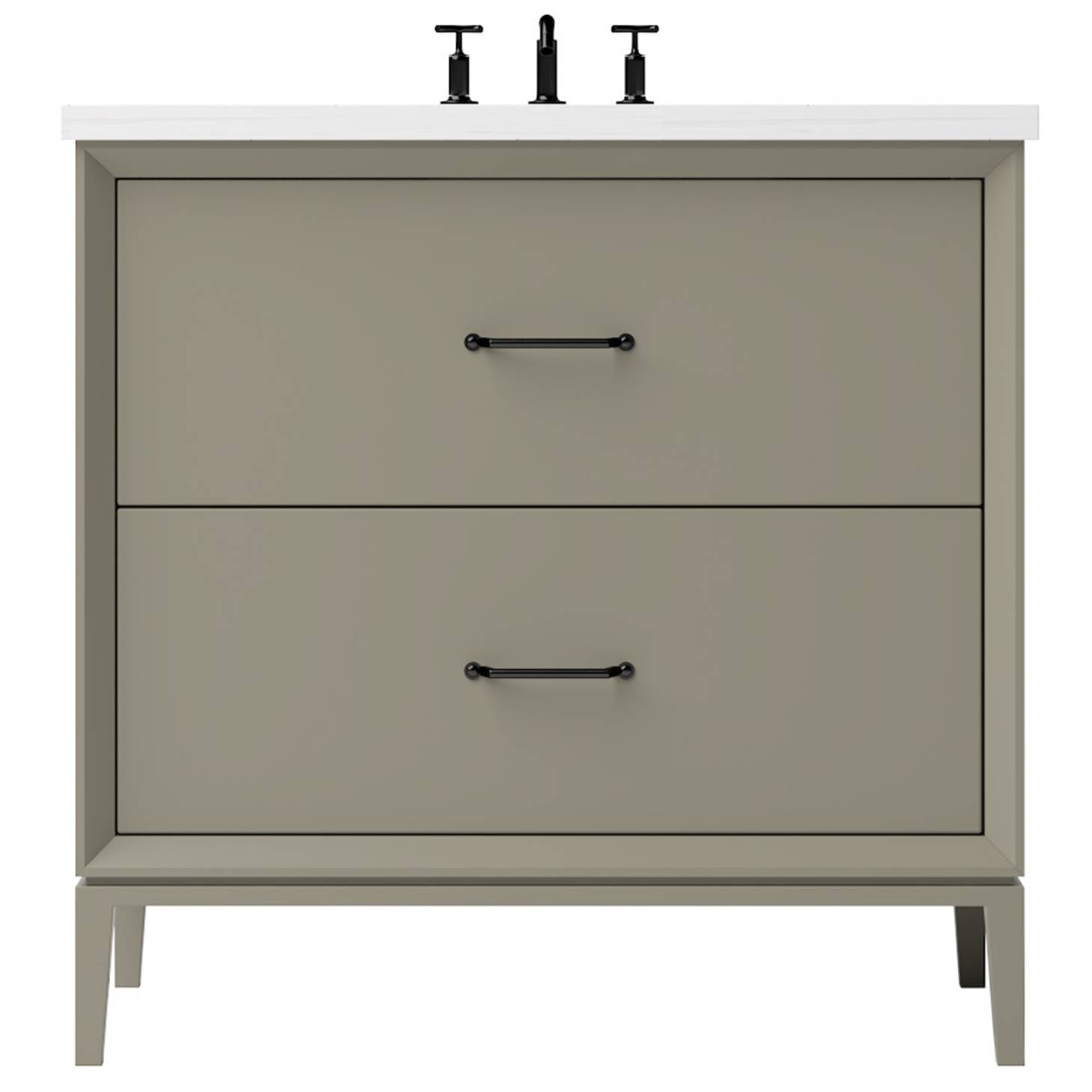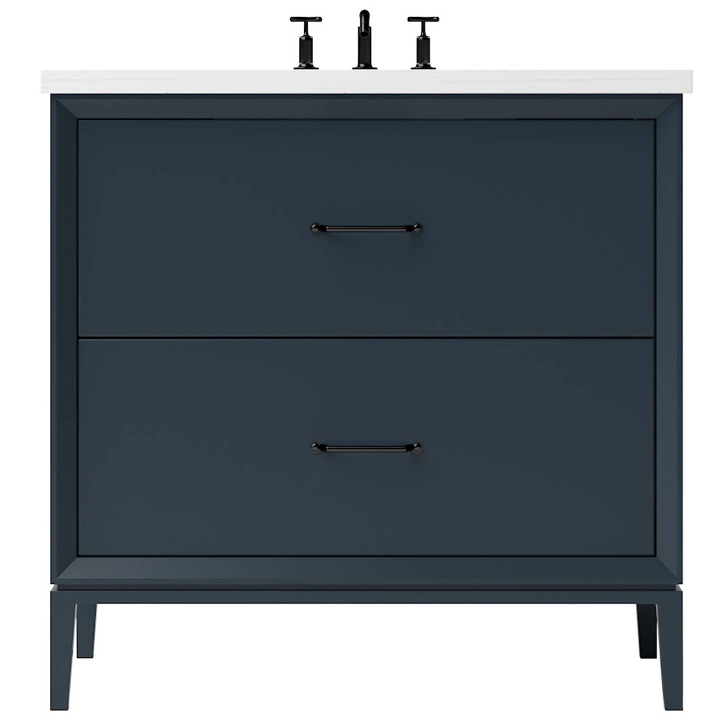 Give your bathroom an instant design upgrade with the Vanderloc Alexandra Two-Drawer Single Bath Vanity—a perfect fusion of retro charm and practical design. With its signature angled frame, tapered legs, and clean lines, this freestanding vanity adds a bold yet refined touch to any space. Available in eight premium painted finishes and three versatile sizes, it’s built to match your style and fit your bathroom flawlessly.