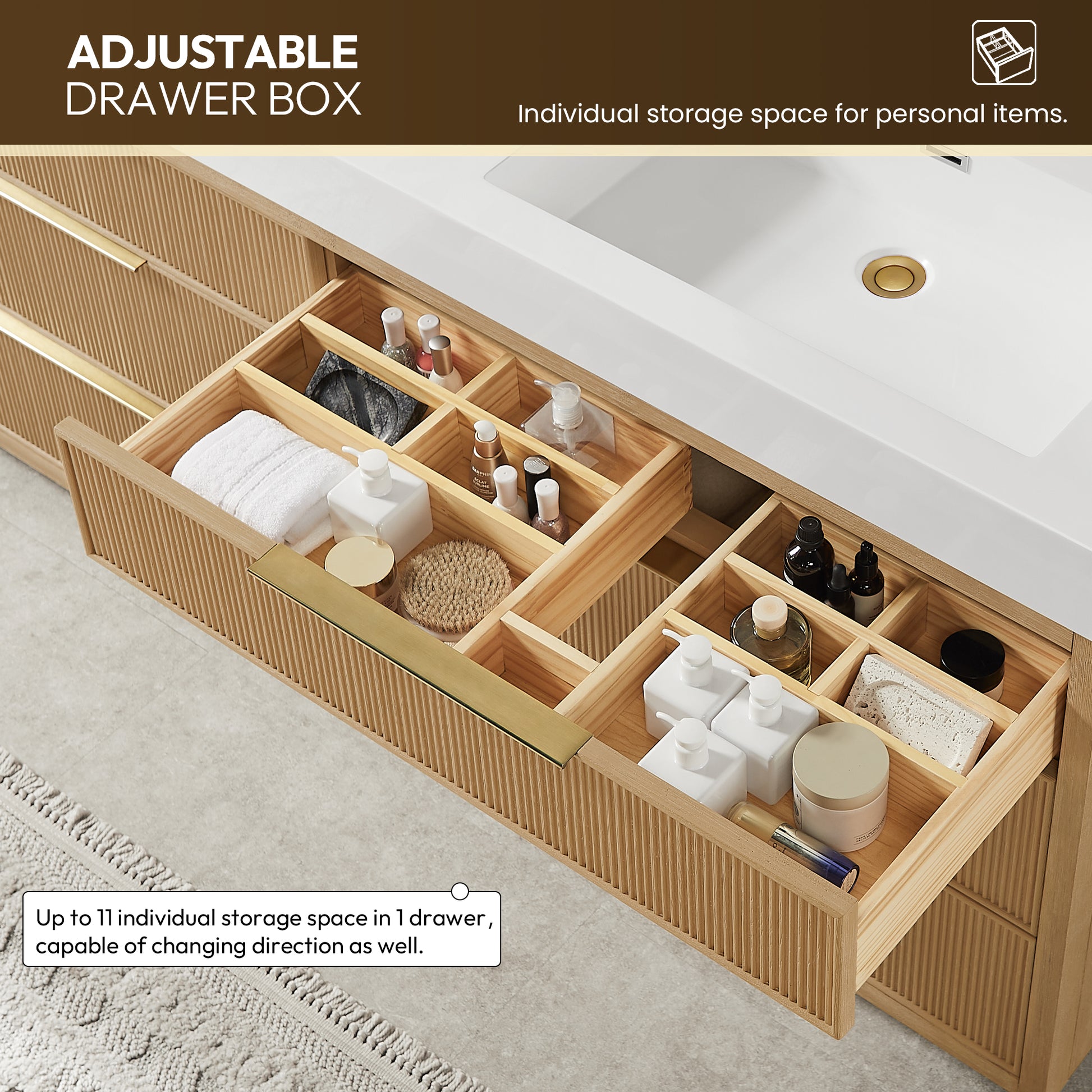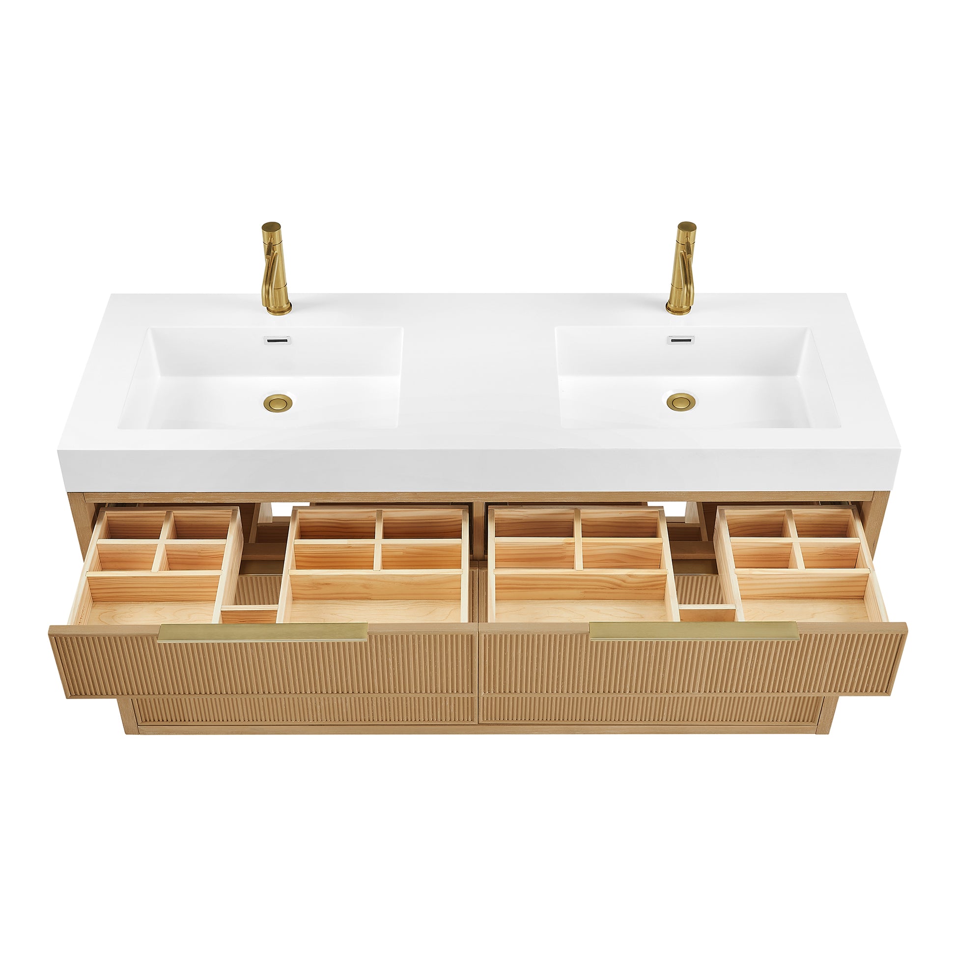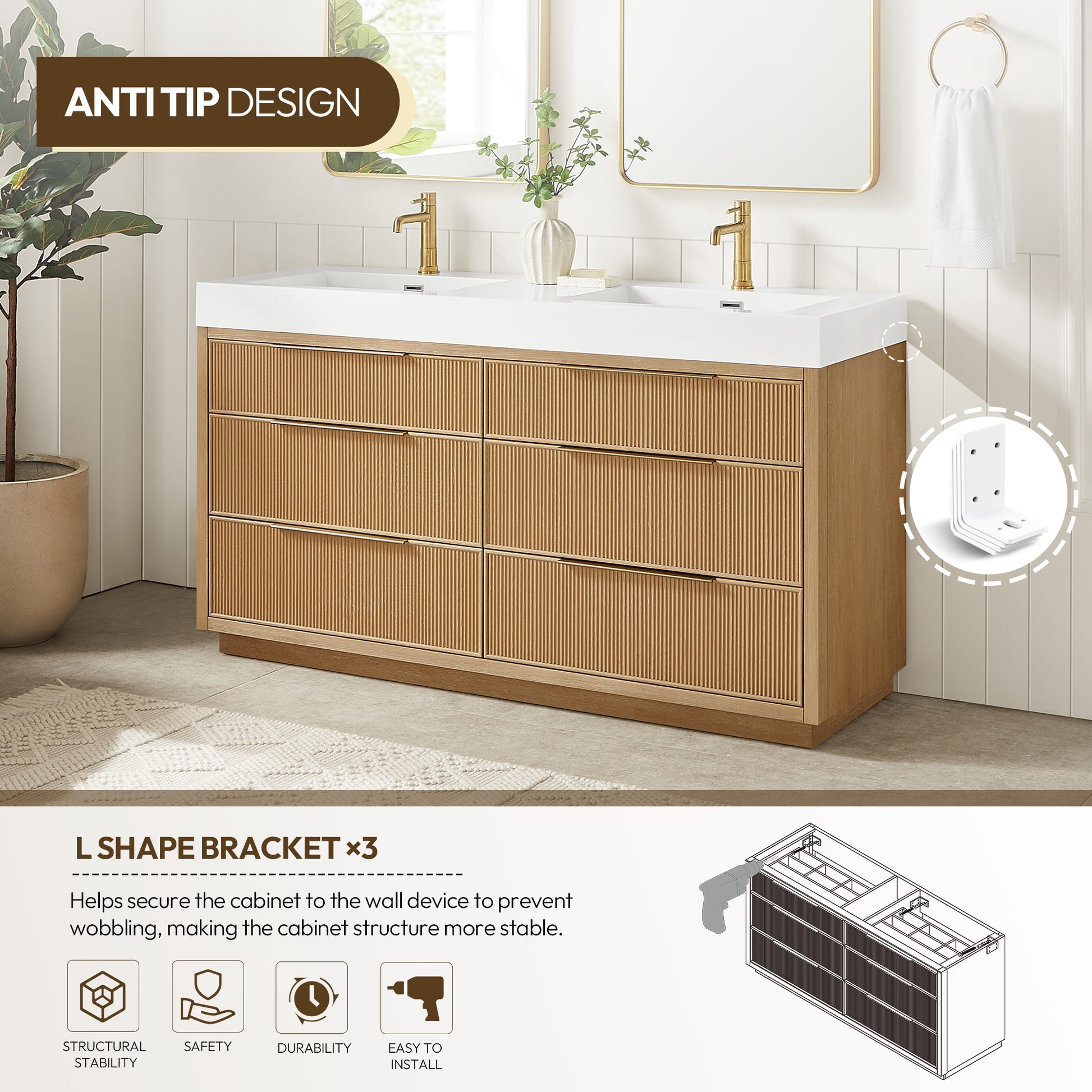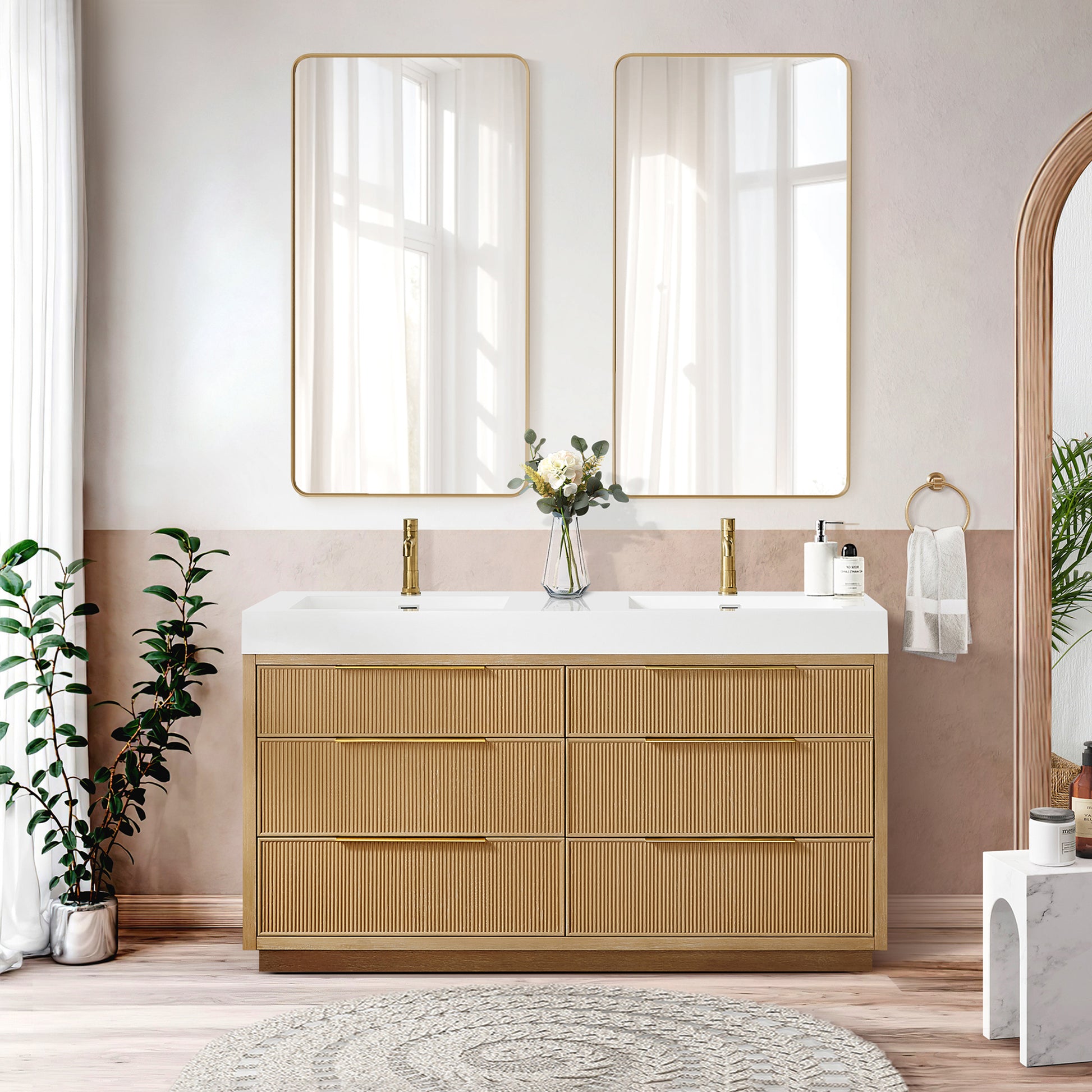 Vinnova, Hohhot 60M" Free-standing Double Bath Vanity in Washed Ash Grey with White Integrated Stone Sink Top