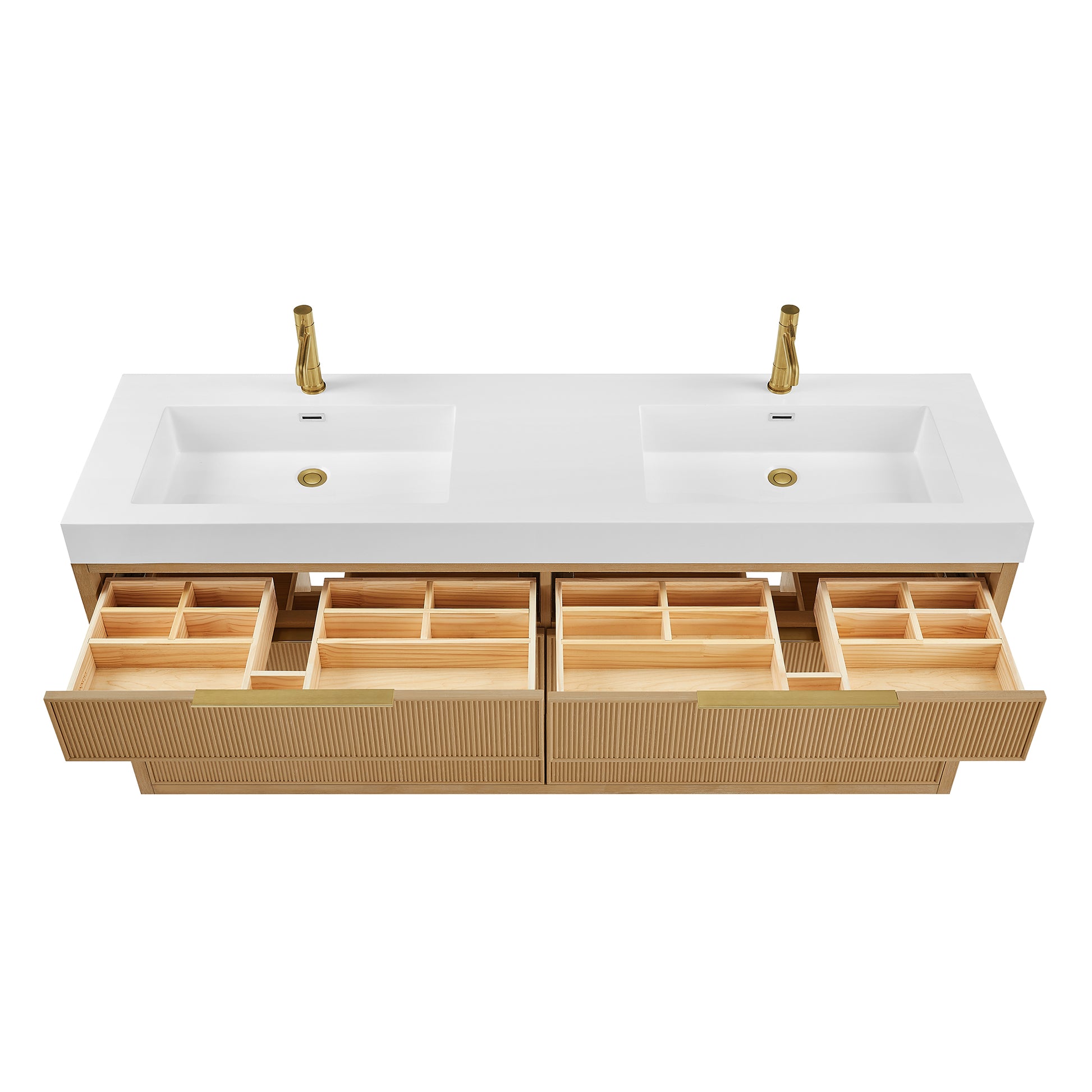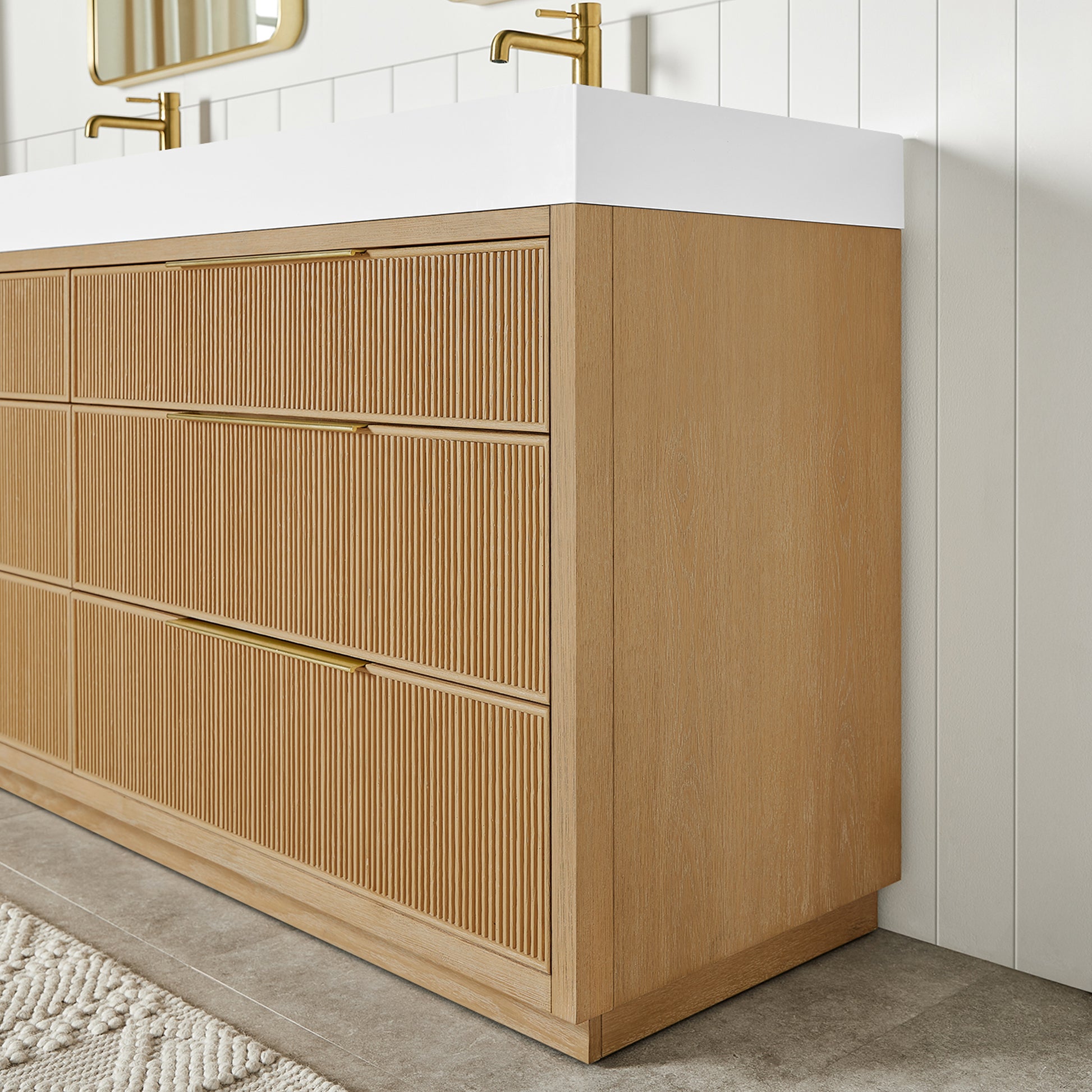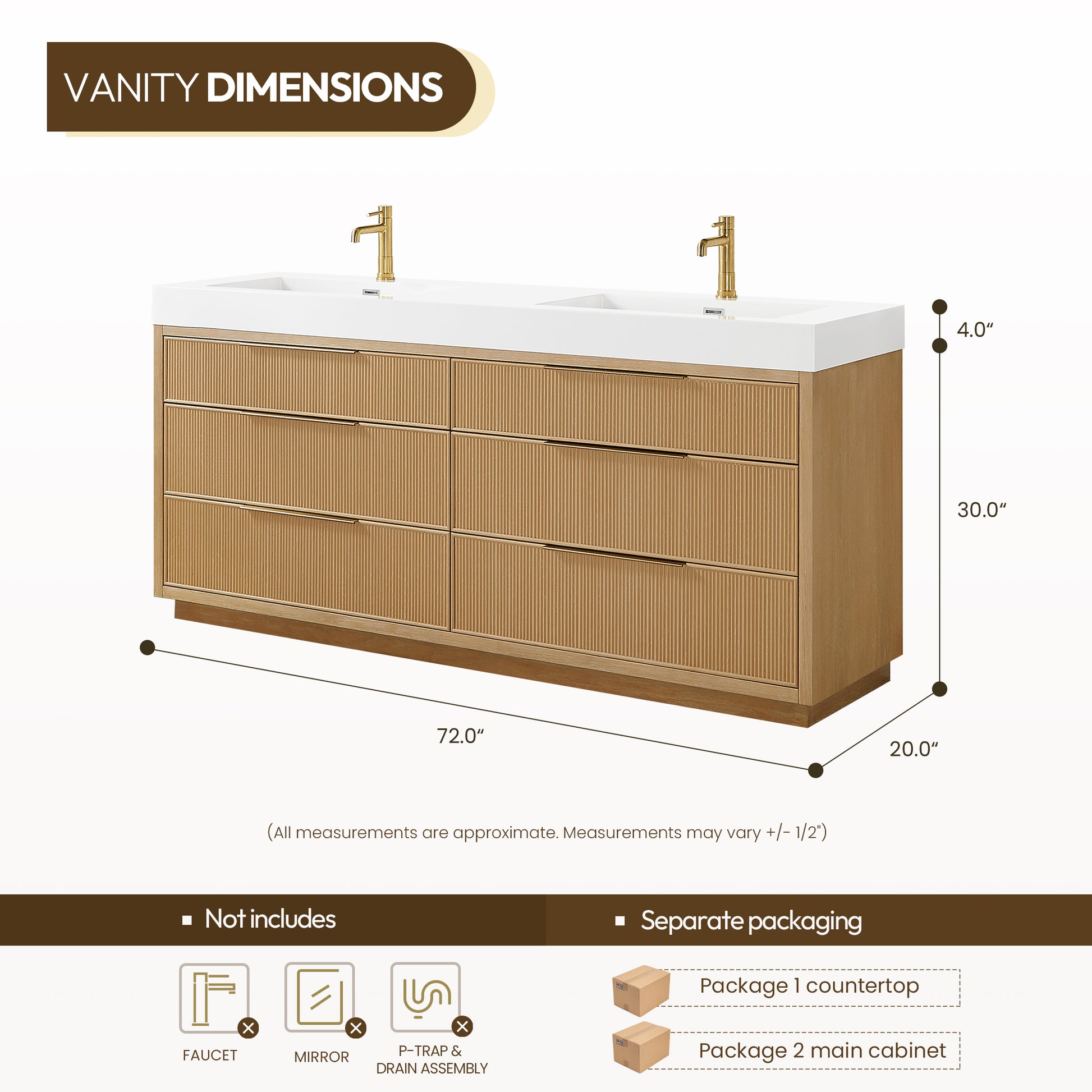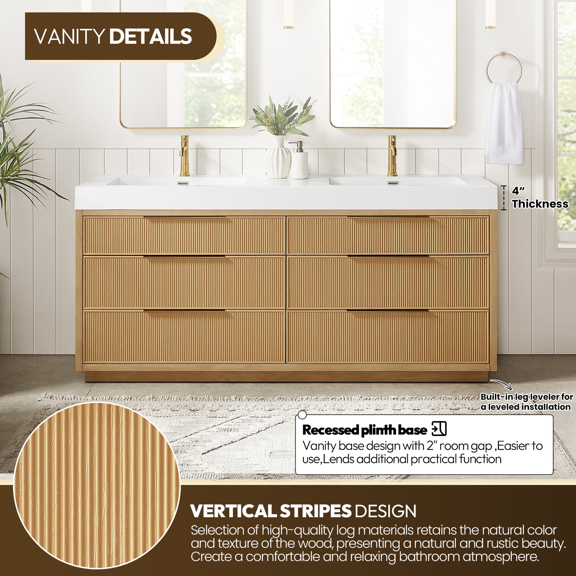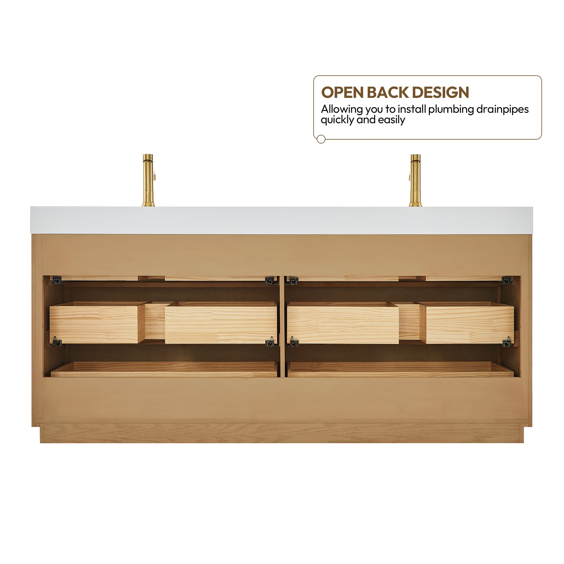 Vinnova, Hohhot 72" Free-standing Double Bath Vanity in Washed Ash Grey with White Integrated Stone Sink Top