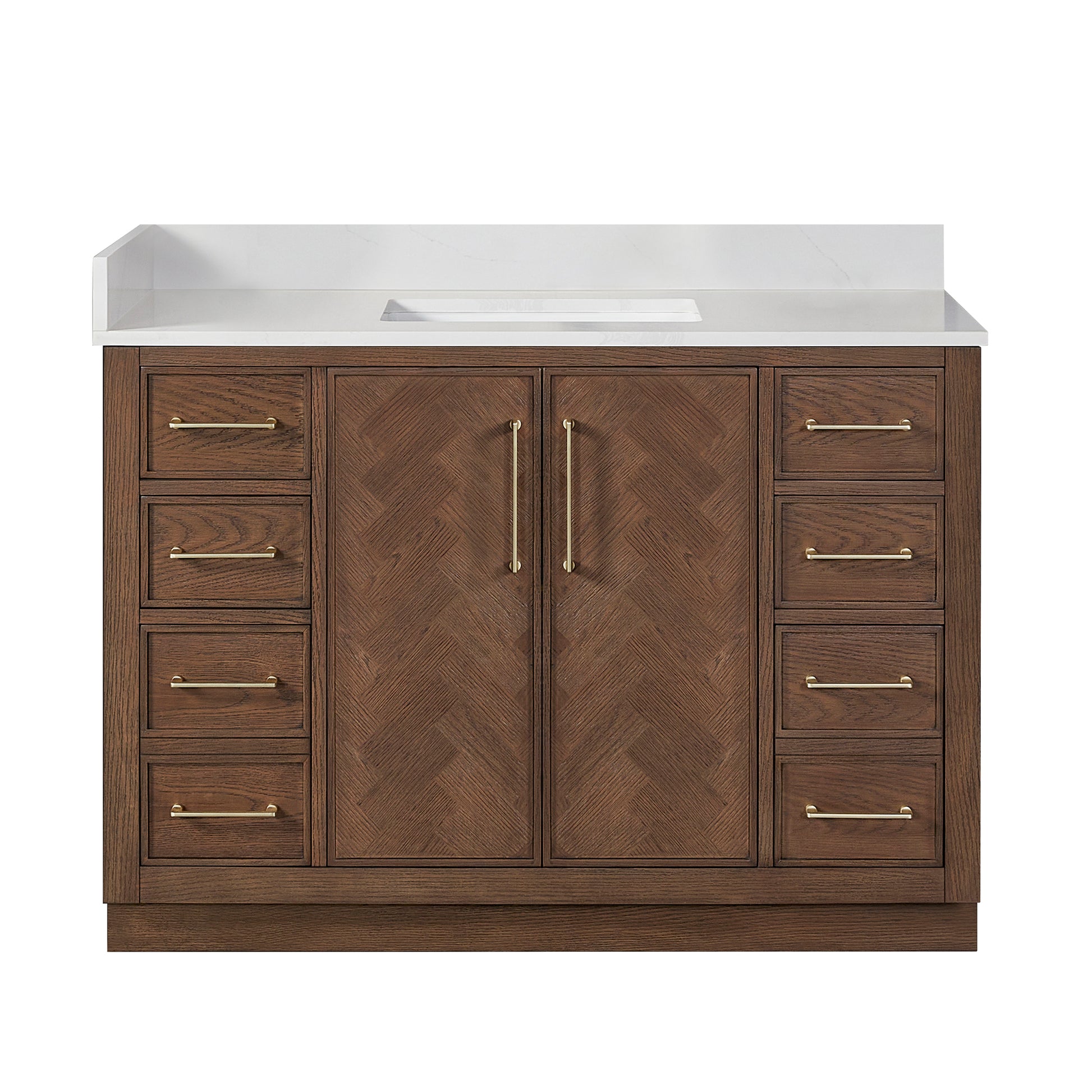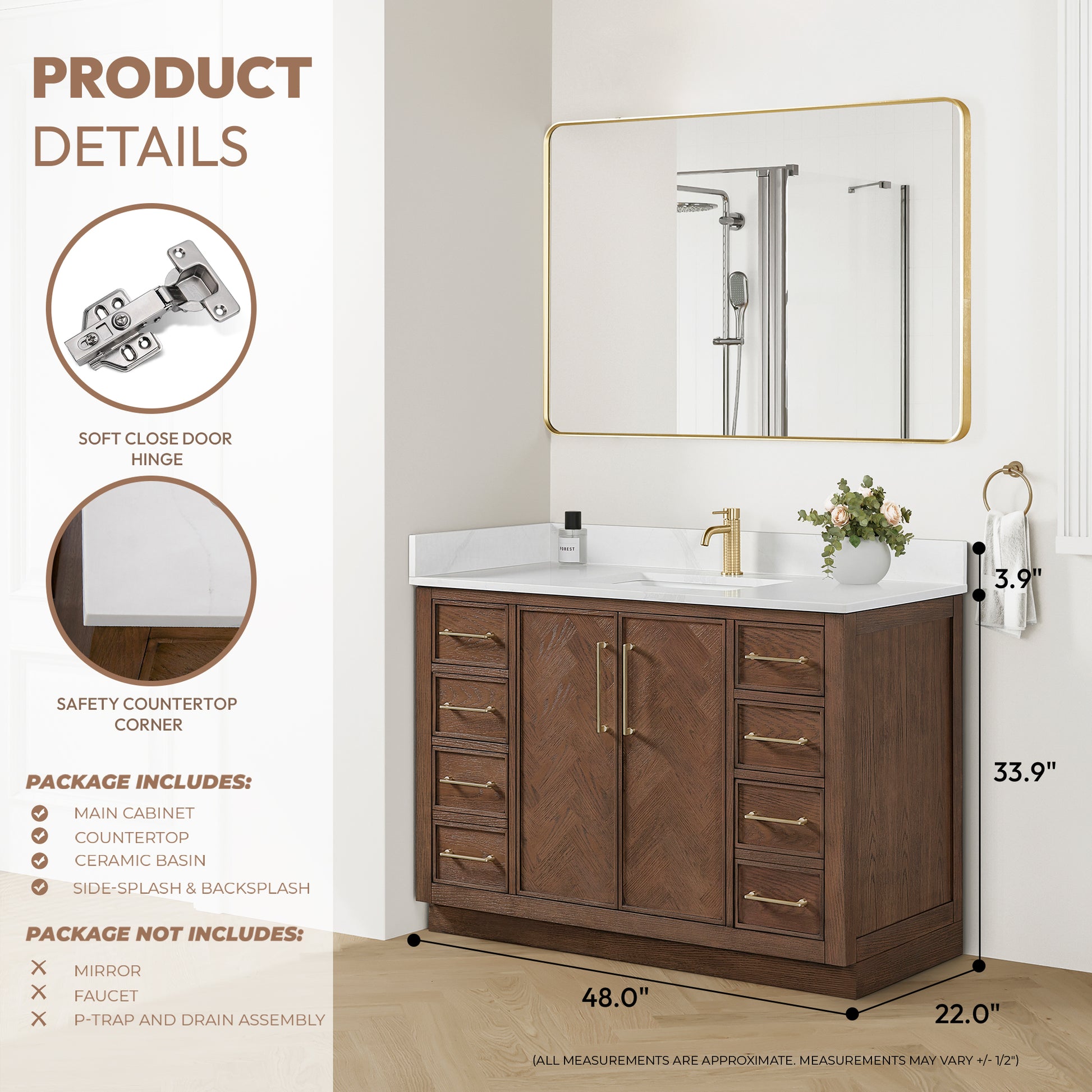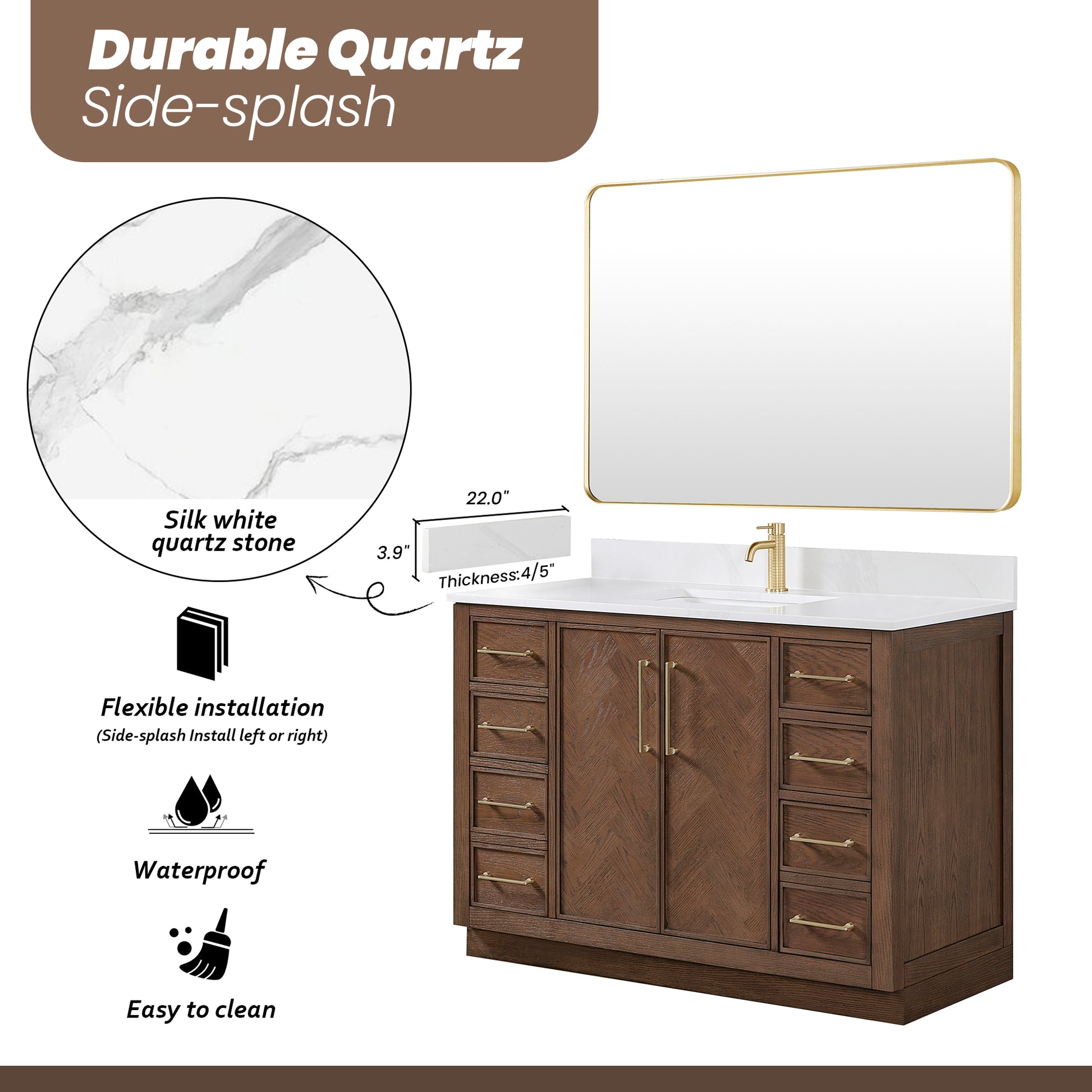 Upgrade your bathroom with the Jakarta 48 Freestanding Single Bath Vanity in Aged Dark Brown Oak with Silk White Quartz Stone Top today.