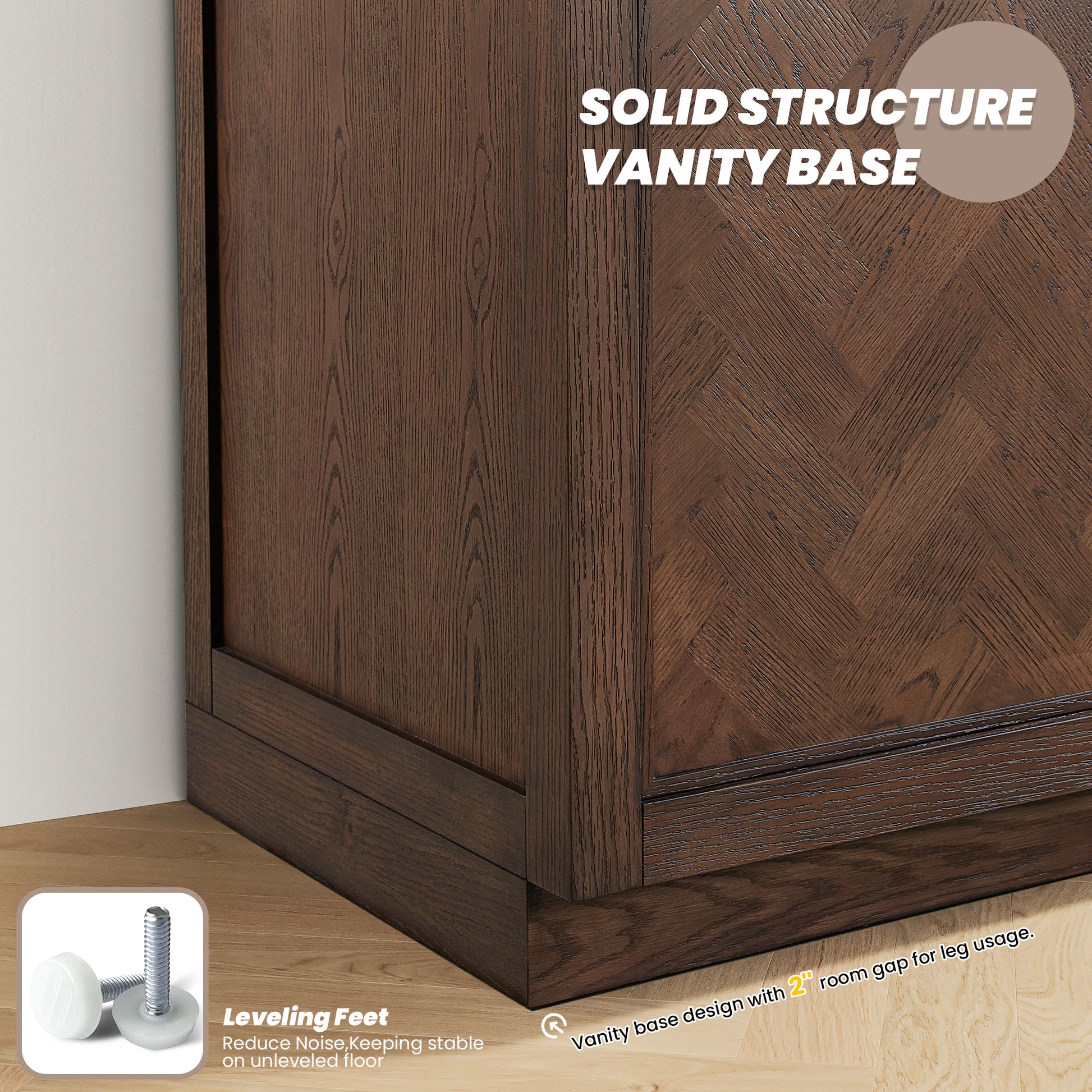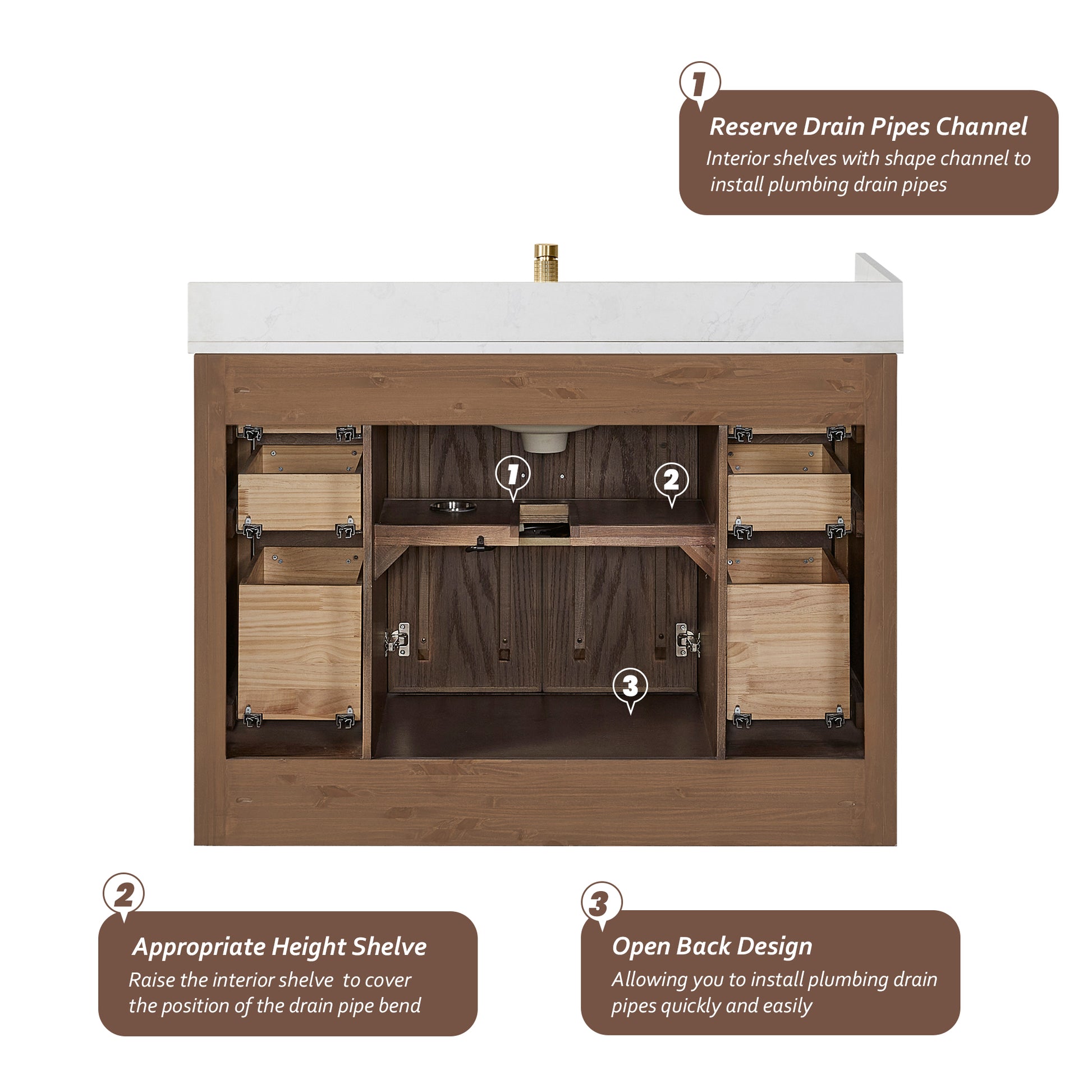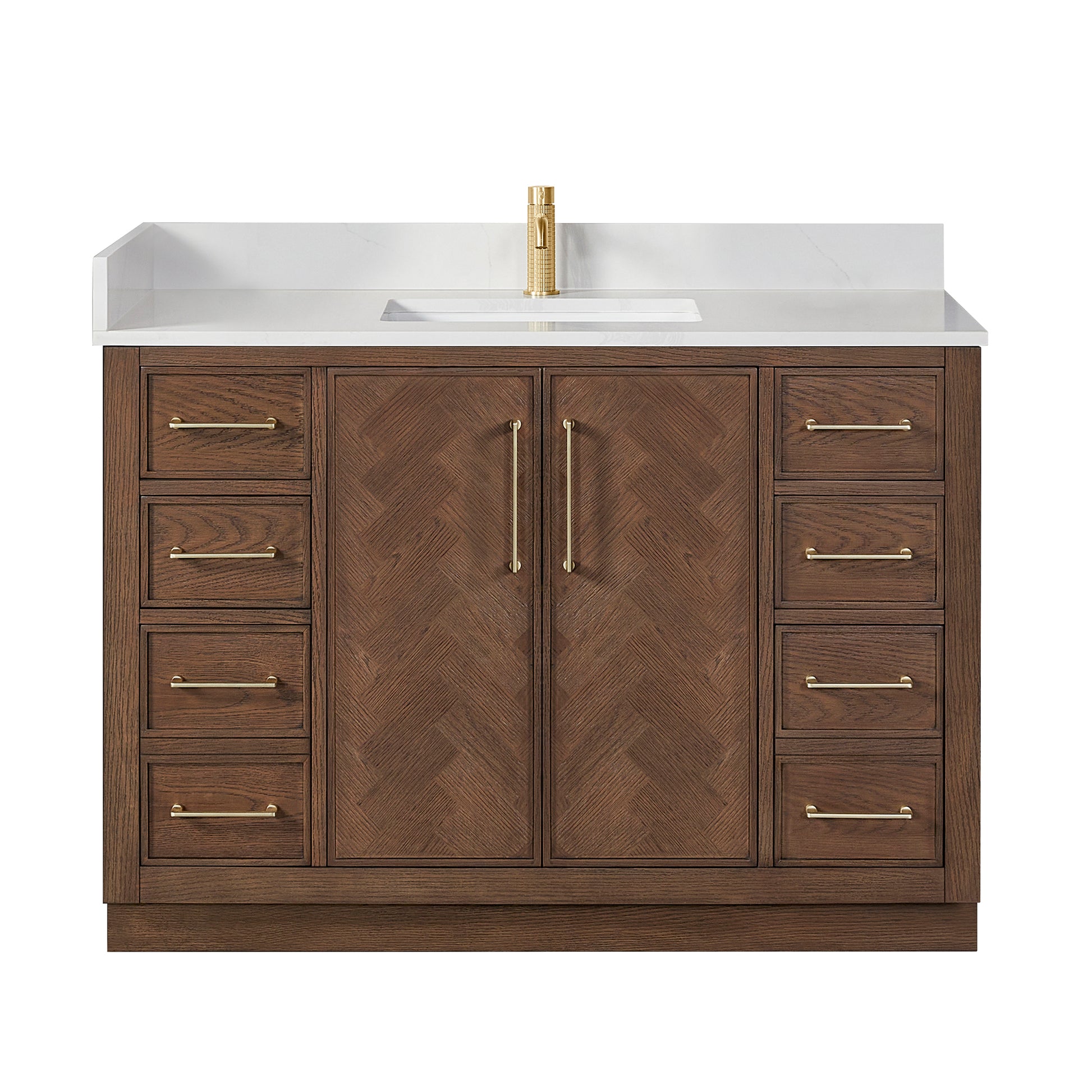 Vinnova, Jakarta 48" Freestanding Single Bath Vanity in Aged Dark Brown Oak with Silk White Quartz Stone Top
