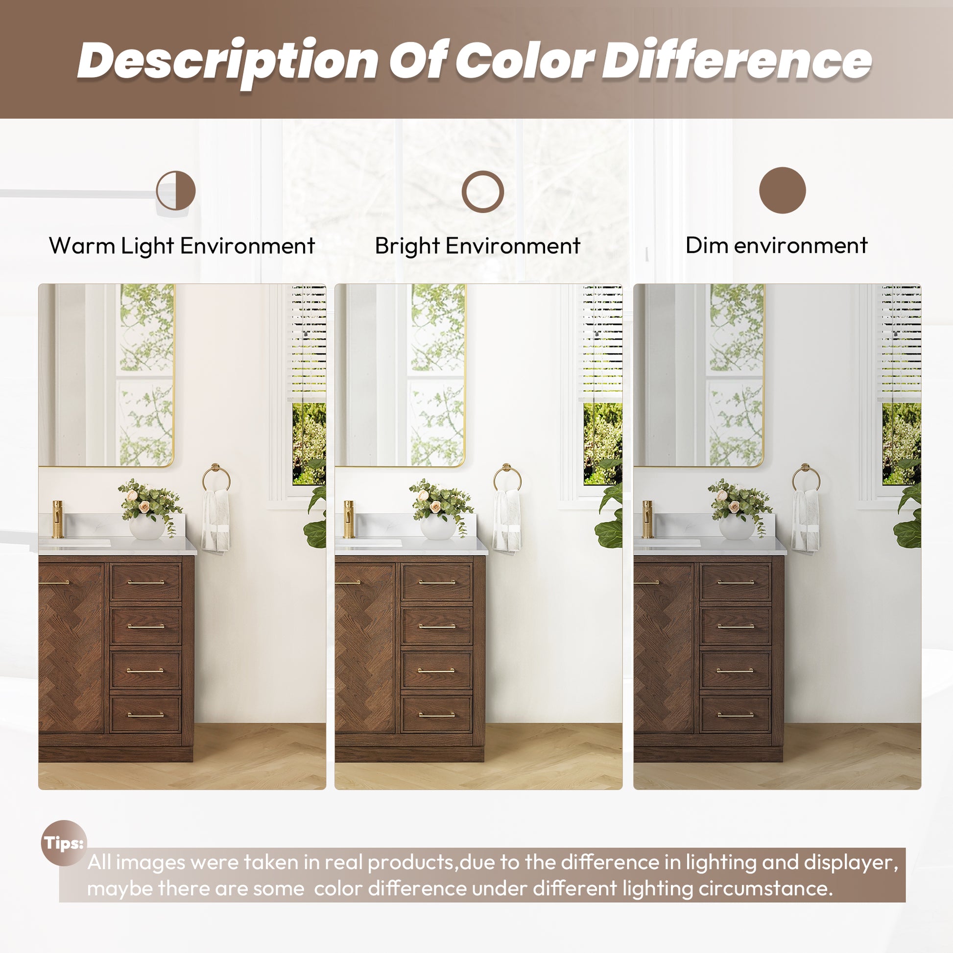- Aged Dark Brown Oak finish adds a touch of elegance to any bathroom