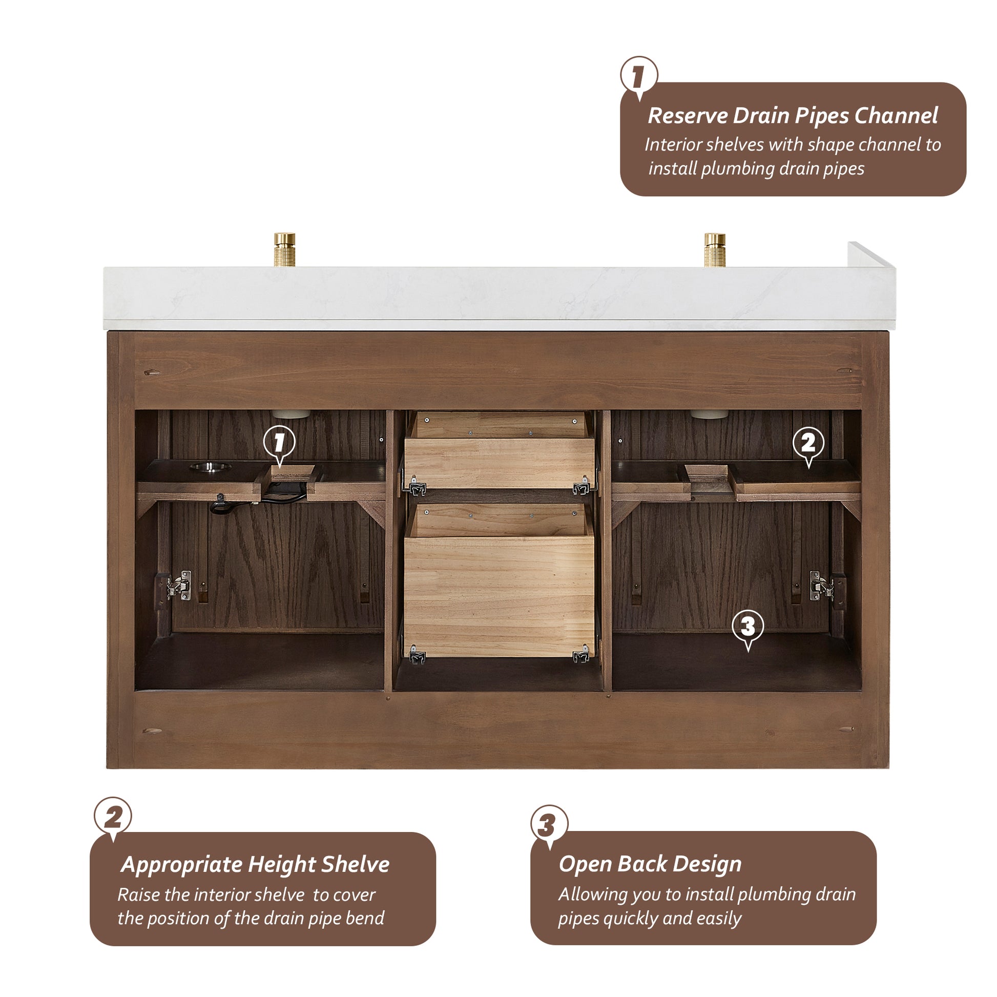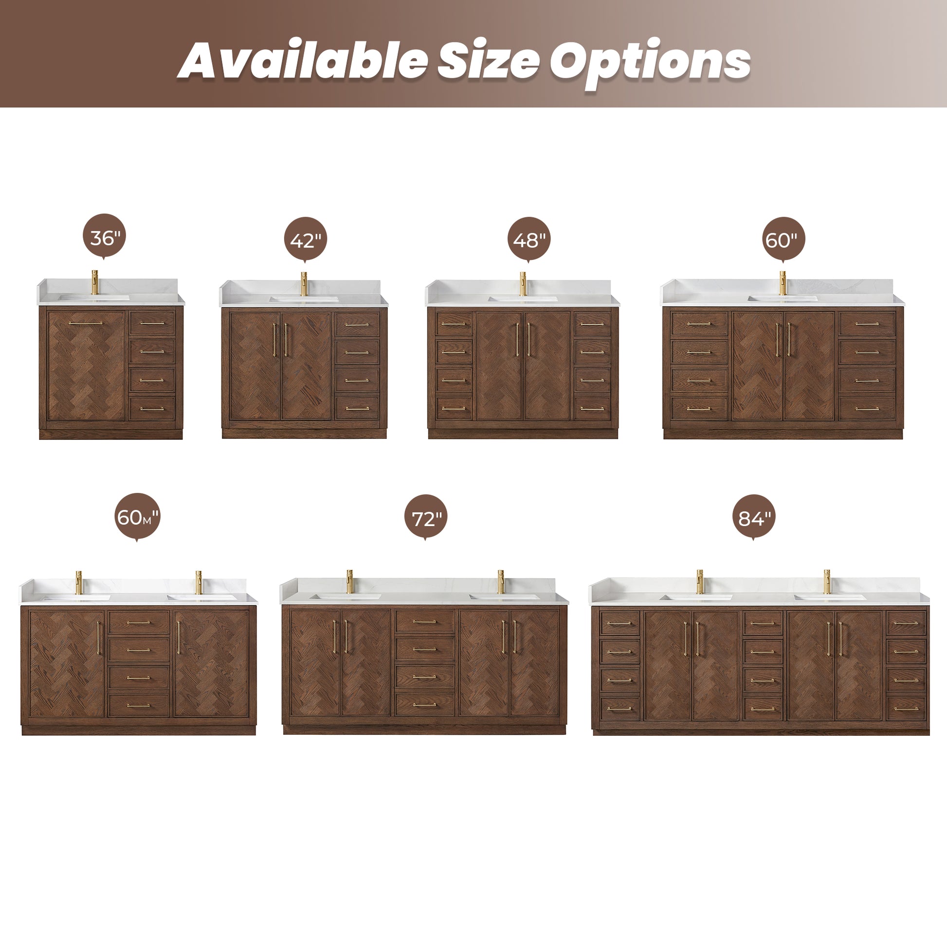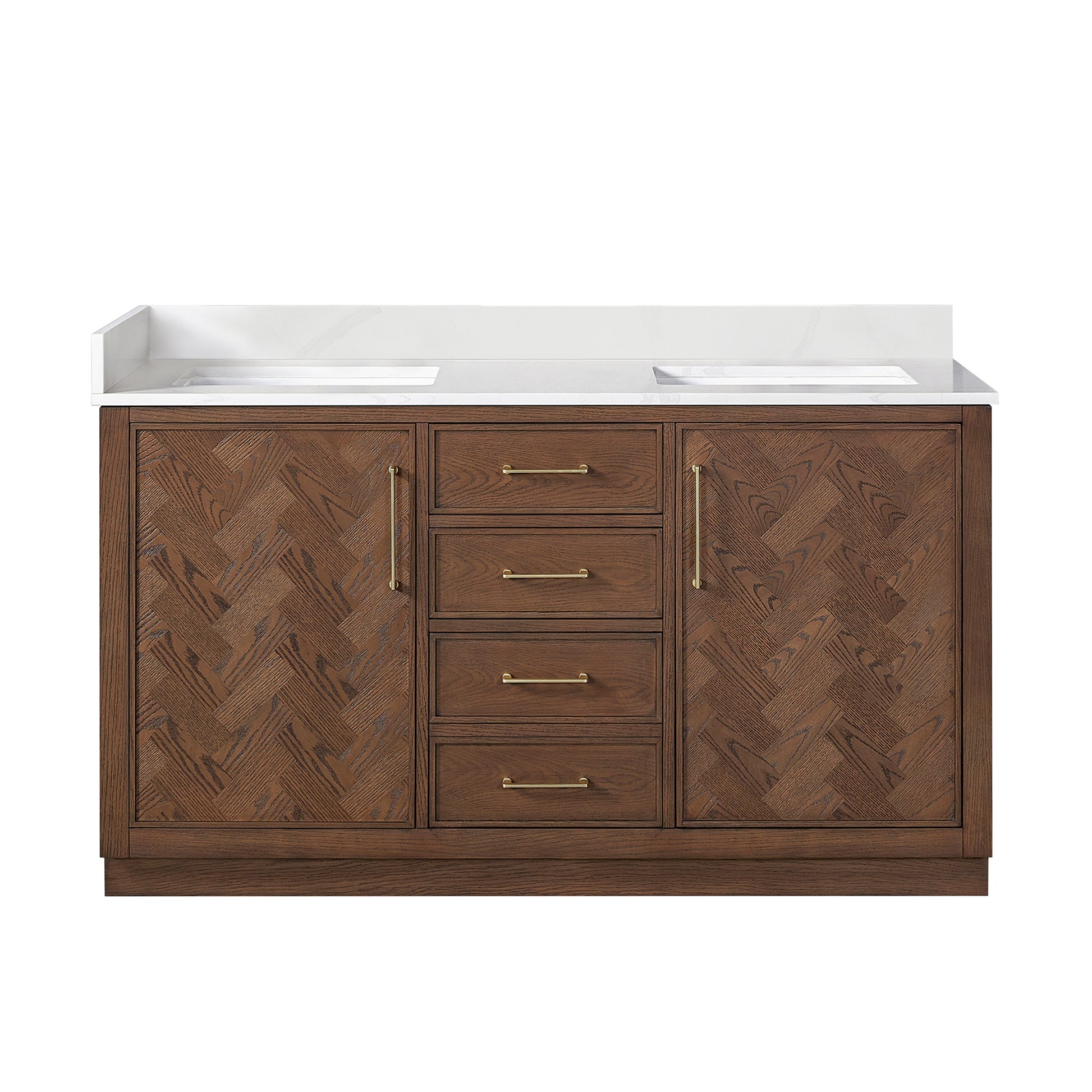 Vinnova, Jakarta 60M" Freestanding Double Bath Vanity in Aged Dark Brown Oak with Silk White Quartz Stone Top